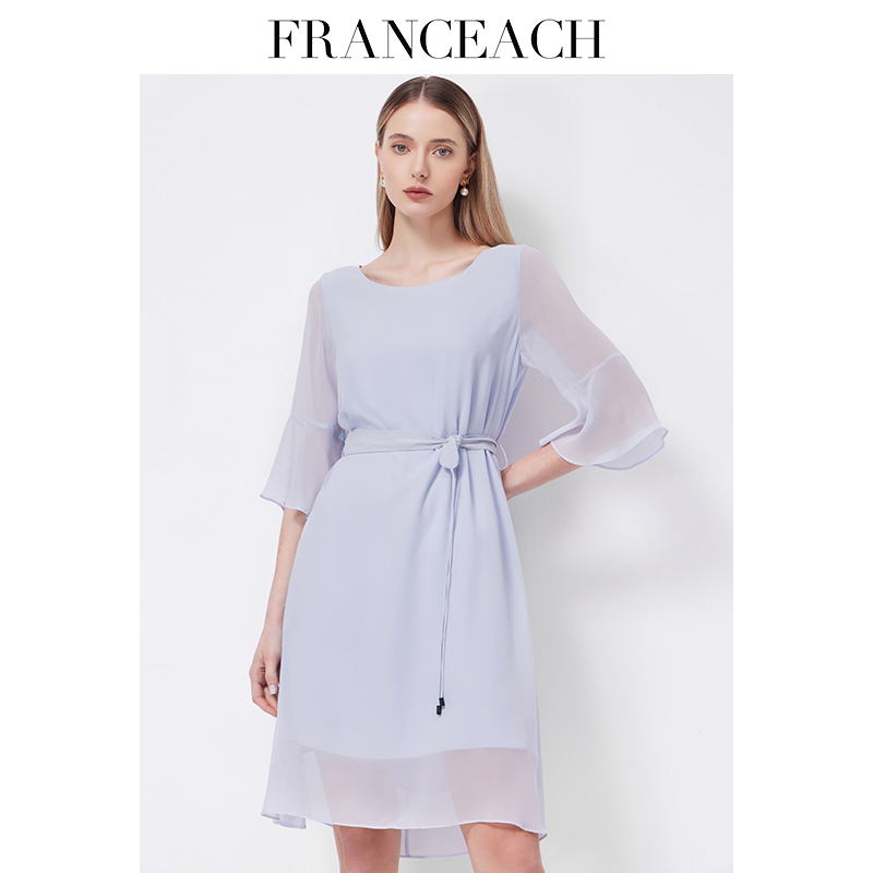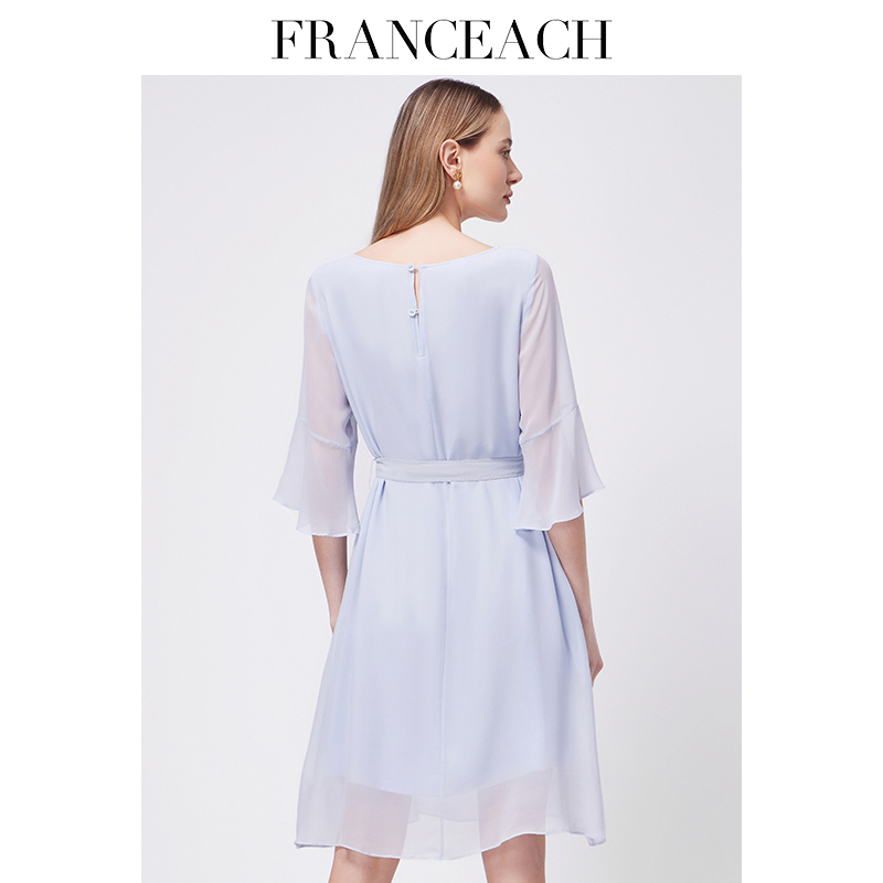 法涵意弛法式桑蚕丝喇叭袖连衣裙