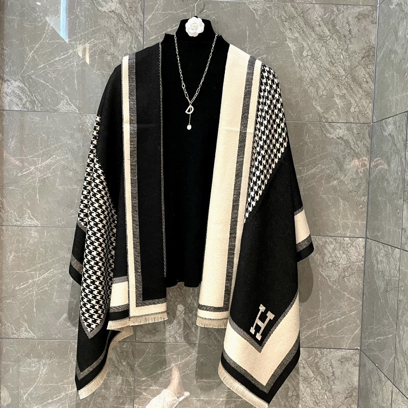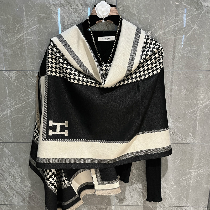 仿羊绒黑色披肩外搭女款2025新款高级感配大衣保两用字母围巾