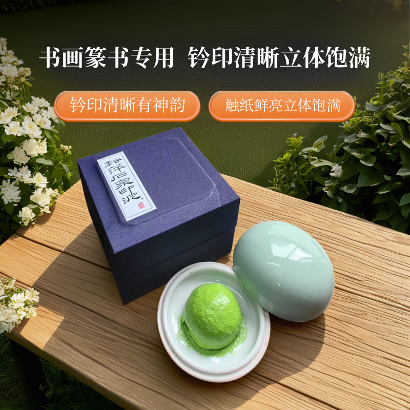耘萍绿色粉色粉红朱砂石泉朱磦印泥书法书画专用印章篆刻印油印台