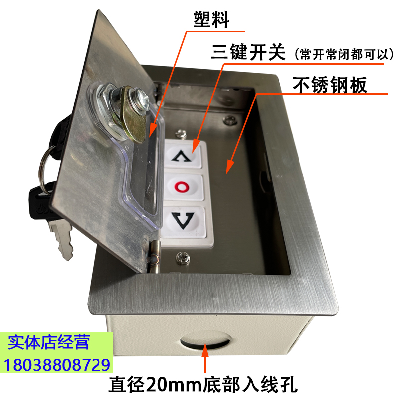 包邮高级不锈钢拉丝面板卷帘闸门防火电动机锁盒明暗装按钮开关盒