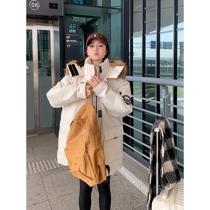 特大码韩系ins宽松百搭白色棉服