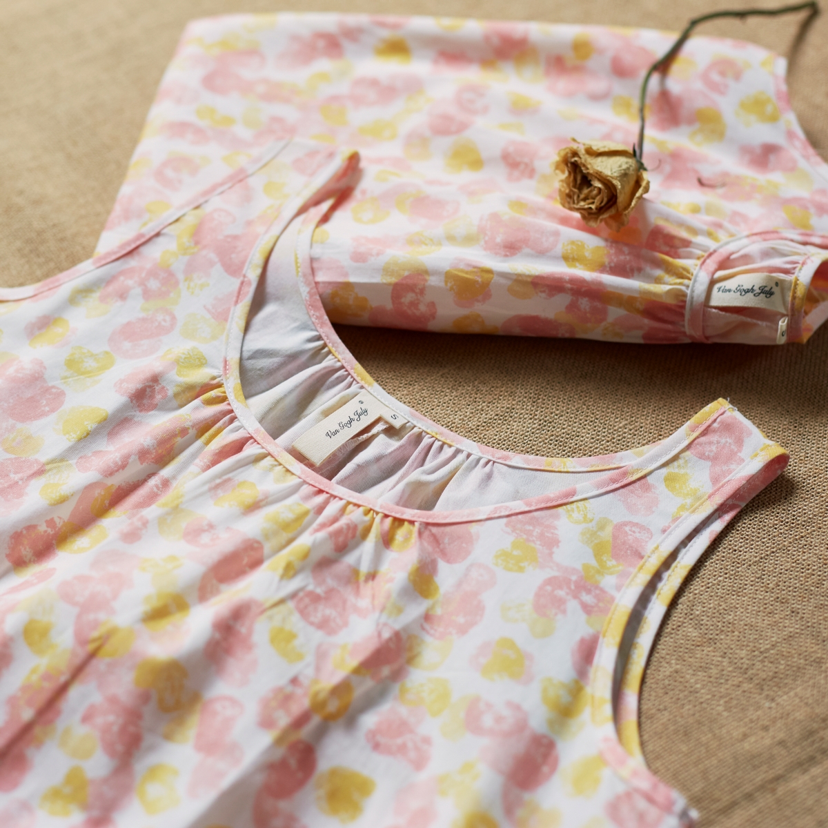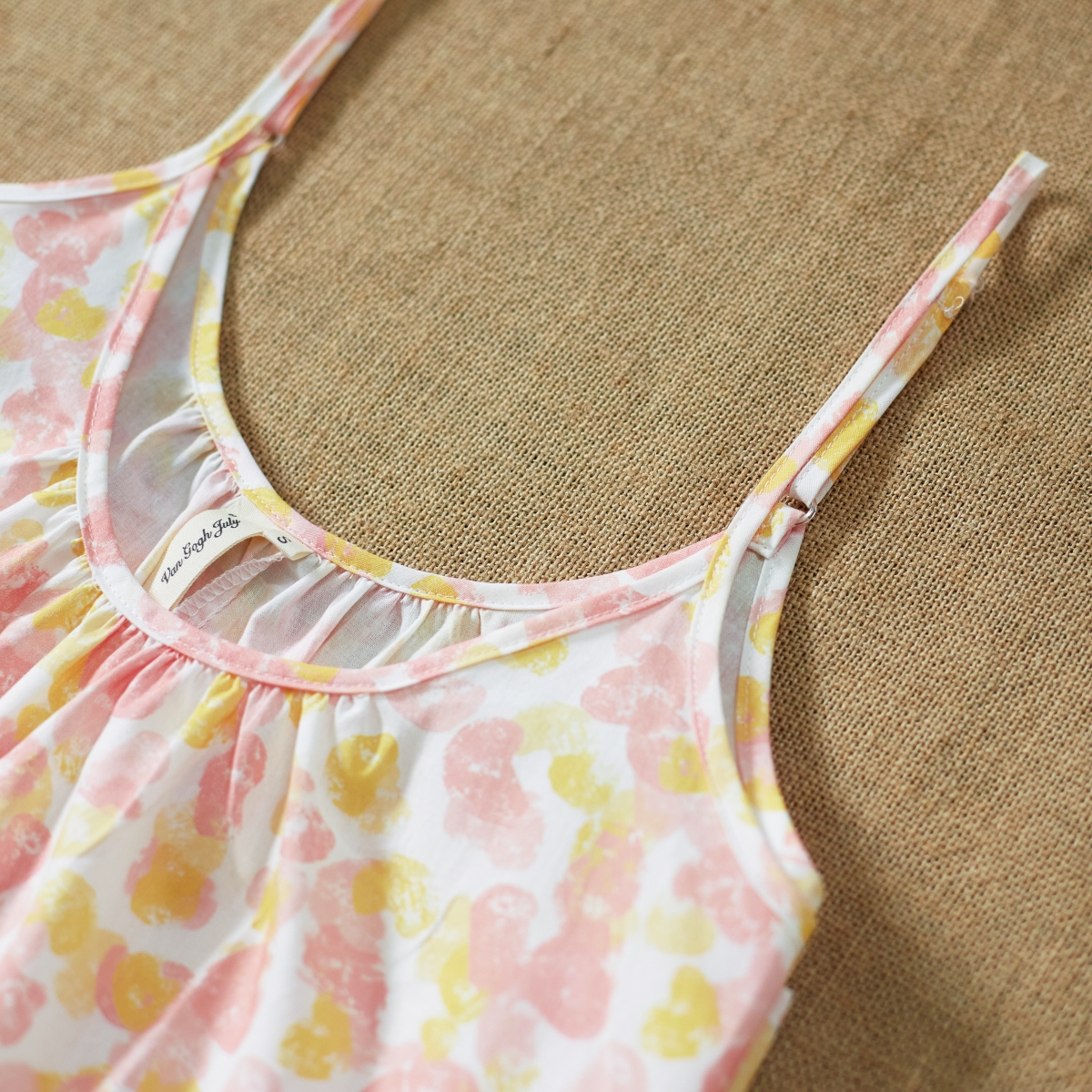 梵高七月夏季新款 纯棉夏日可爱甜美宽松印花吊带背心裙衬裙居家
