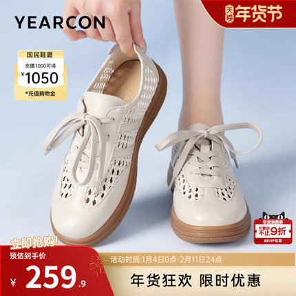 意尔康女鞋夏季皮鞋复古德训鞋英伦风户外休闲镂空透气皮凉鞋女士