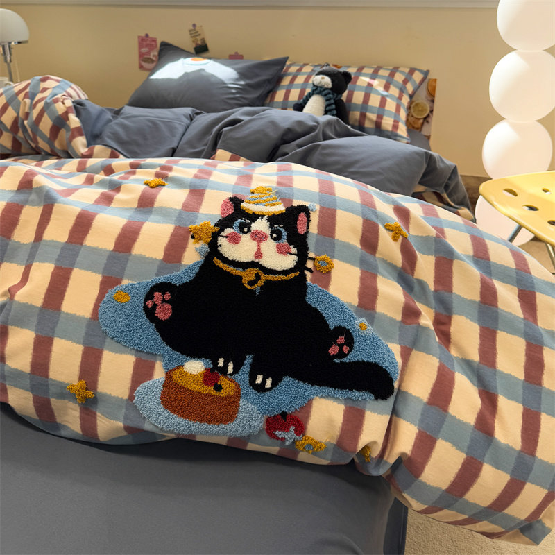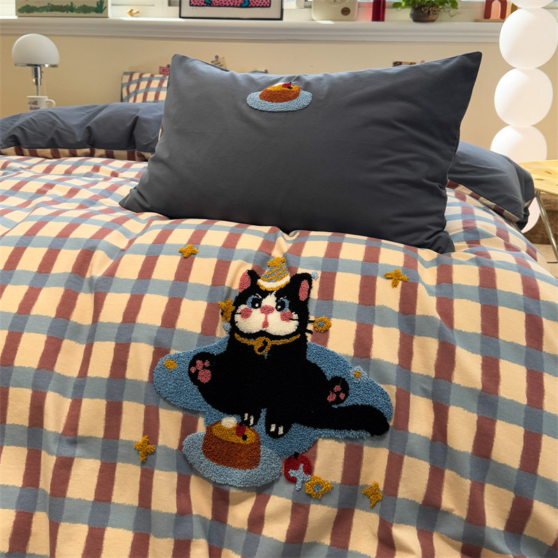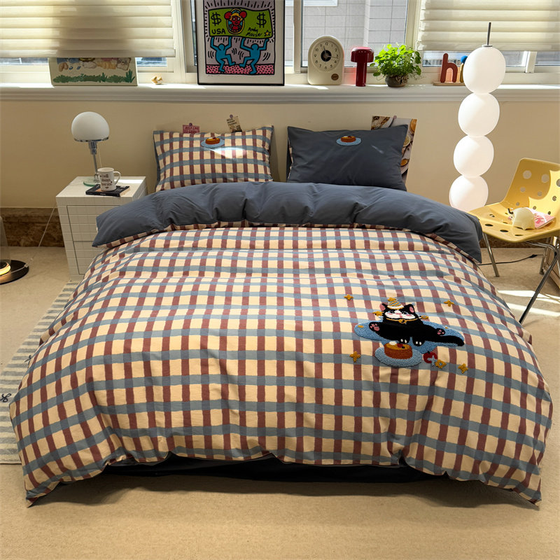 A类纯棉磨毛床上四件套全棉毛巾绣加厚被套罩学生宿舍床单三4件套