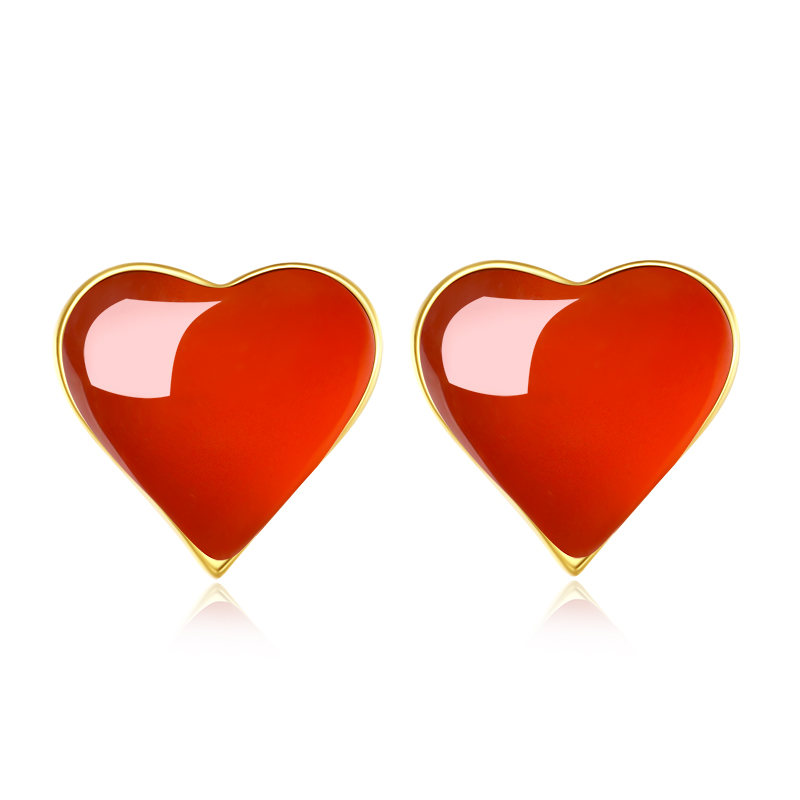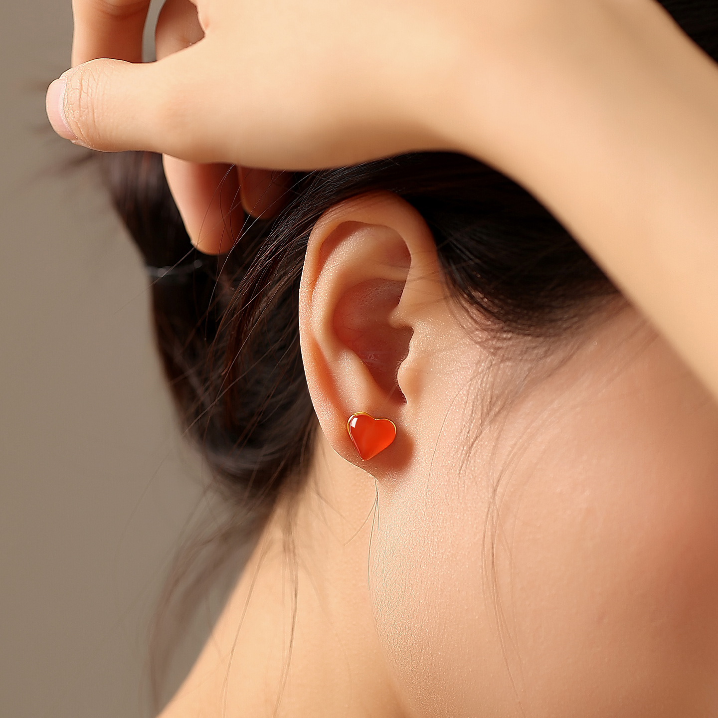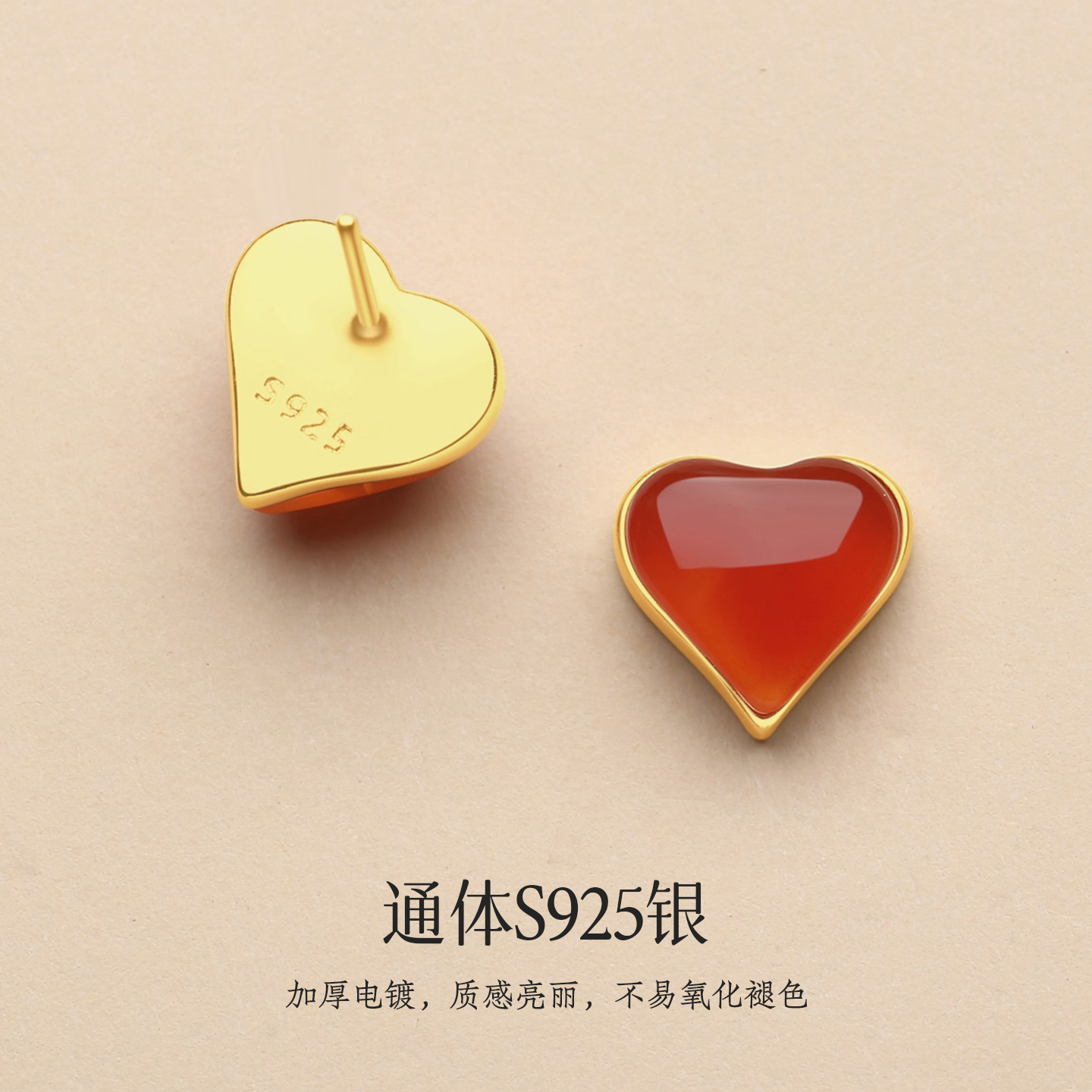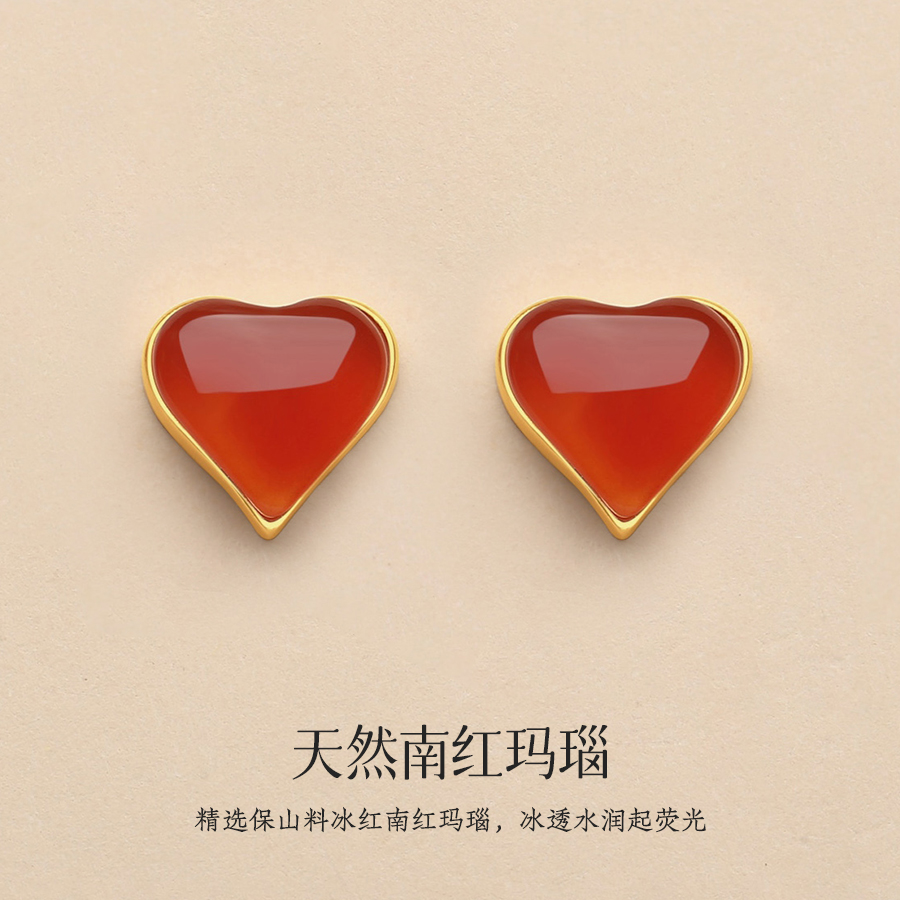 天然南红玛瑙屁桃爱心耳钉女保山冰红起荧光满色满肉原矿耳饰耳环