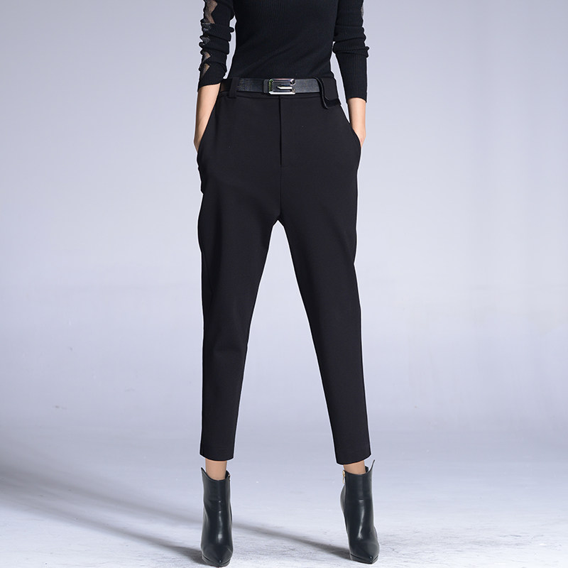 梵多妮哈伦裤女黑色弹力小脚裤垮裤2025春秋新款大码裤子女九分裤