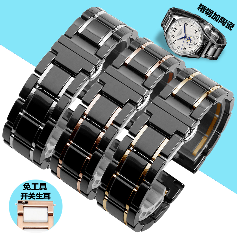 精钢陶瓷表带男 不锈钢手表链女蝴蝶扣适配天梭 浪琴 天王 卡西欧