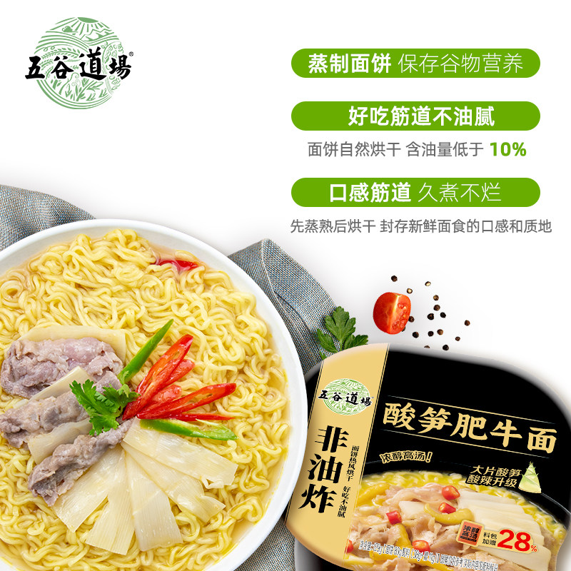 五谷道场0油炸健康方便面桶装整箱批发冲泡免煮速食泡面面食