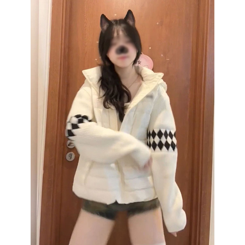 冬日温柔甜美减龄针织拼接保暖立领棉服女学生可爱软妹防寒面包服