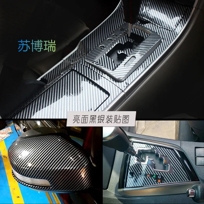 汽车内饰3D4D碳钎维贴纸进口三层5D亮面黑机盖中控后视镜改色贴膜