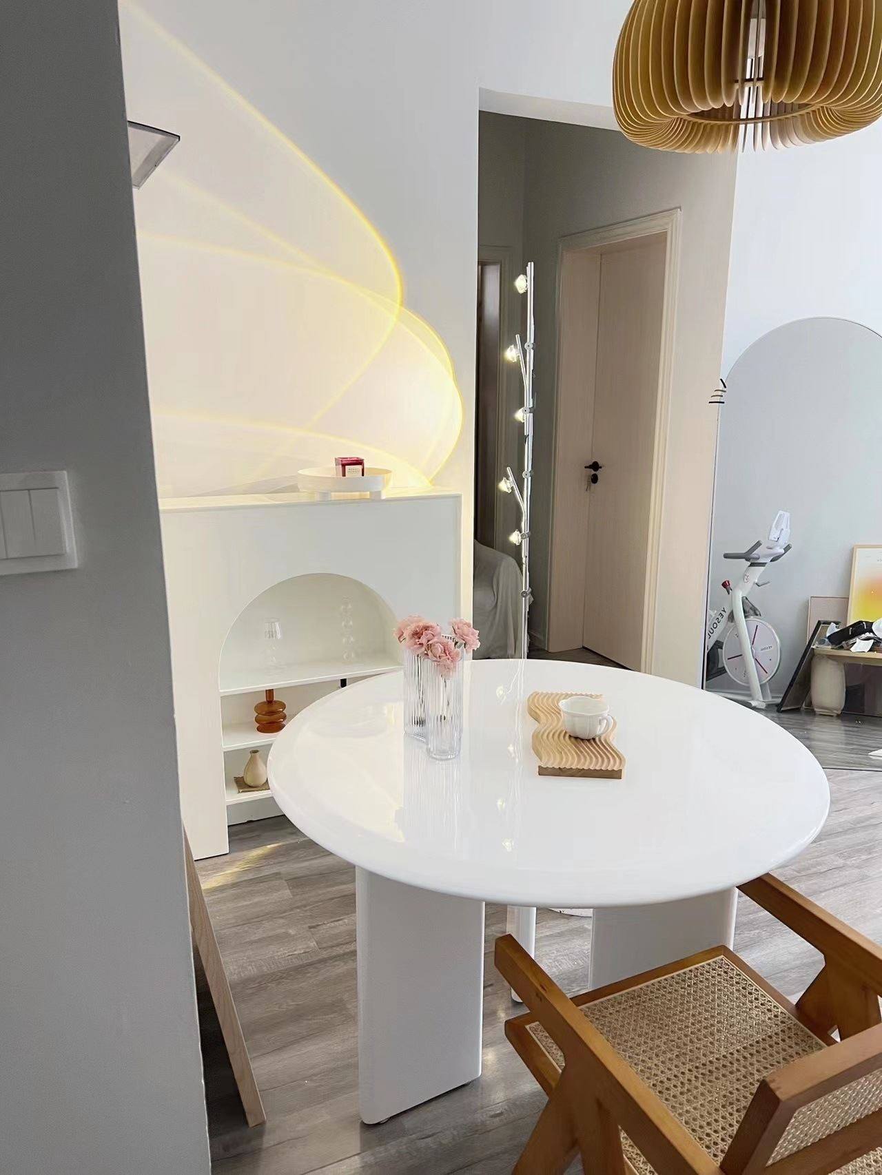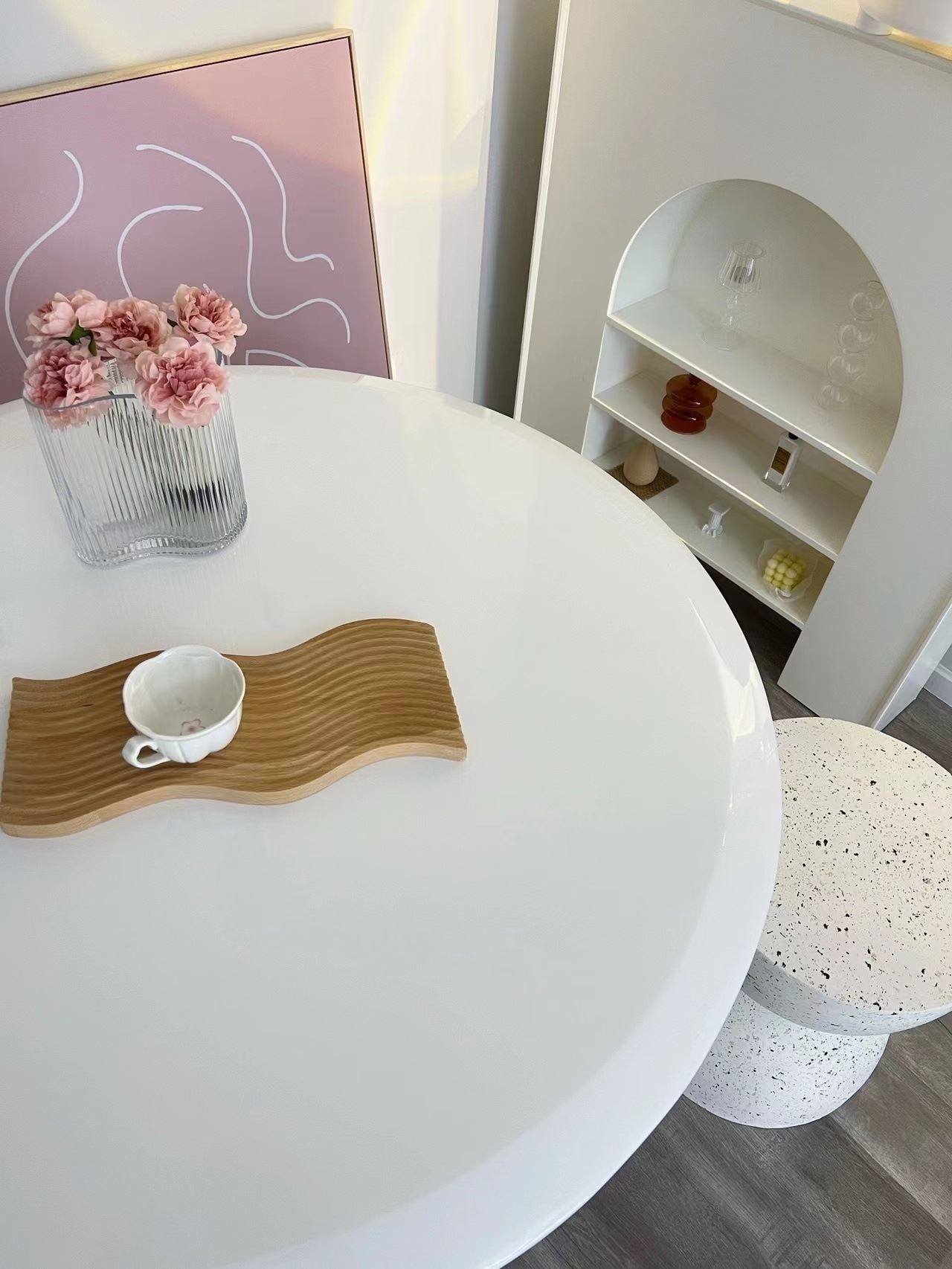 北欧侘寂风圆形餐桌椅组合小户型奶油饭桌极简咖啡厅洽谈桌子