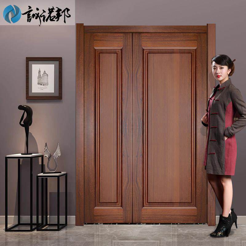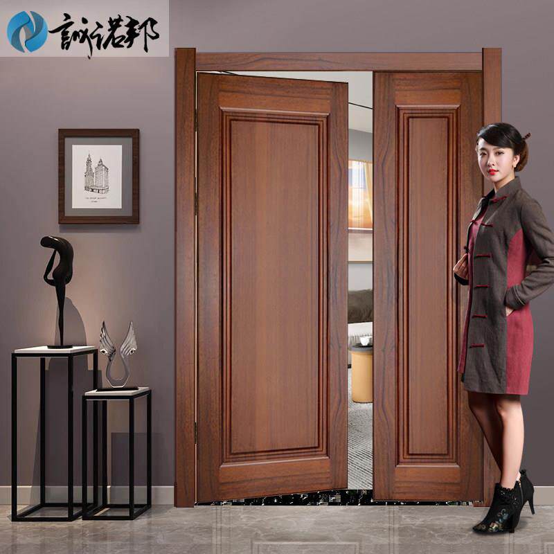 纯实木双开子母门适用于别墅的实木门 桃花芯木纹实木门 家用原木