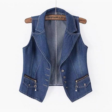 女装夏装韩版修身西装领短款无袖牛仔马甲背心马夹外套坎肩上衣潮