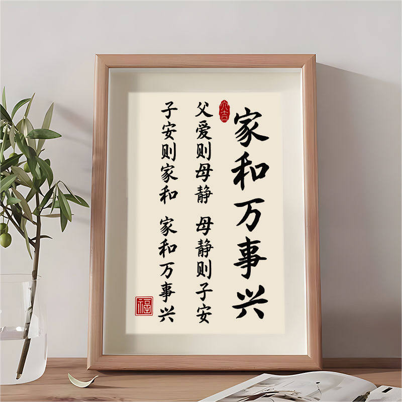 家和万事兴家庭和睦好寓意书法摆件相框桌面客厅玄关装饰字画摆台