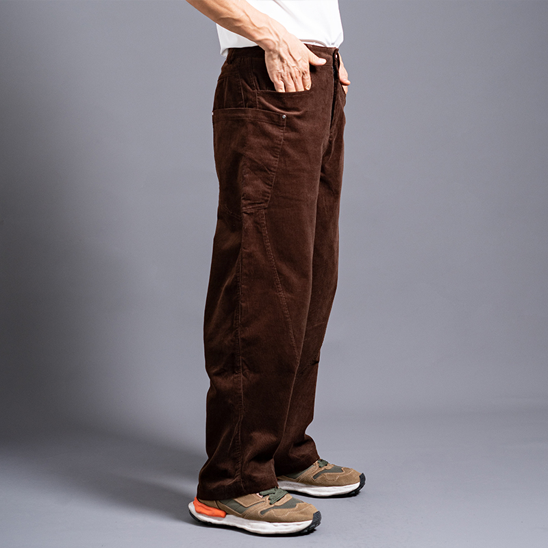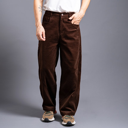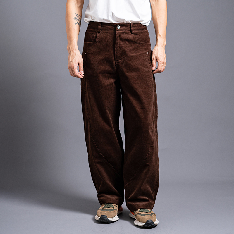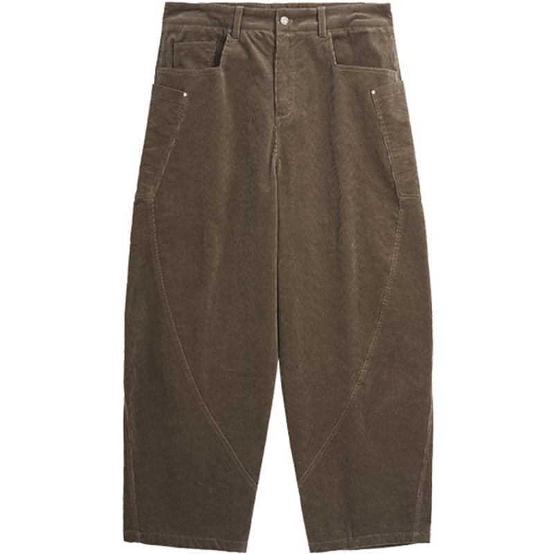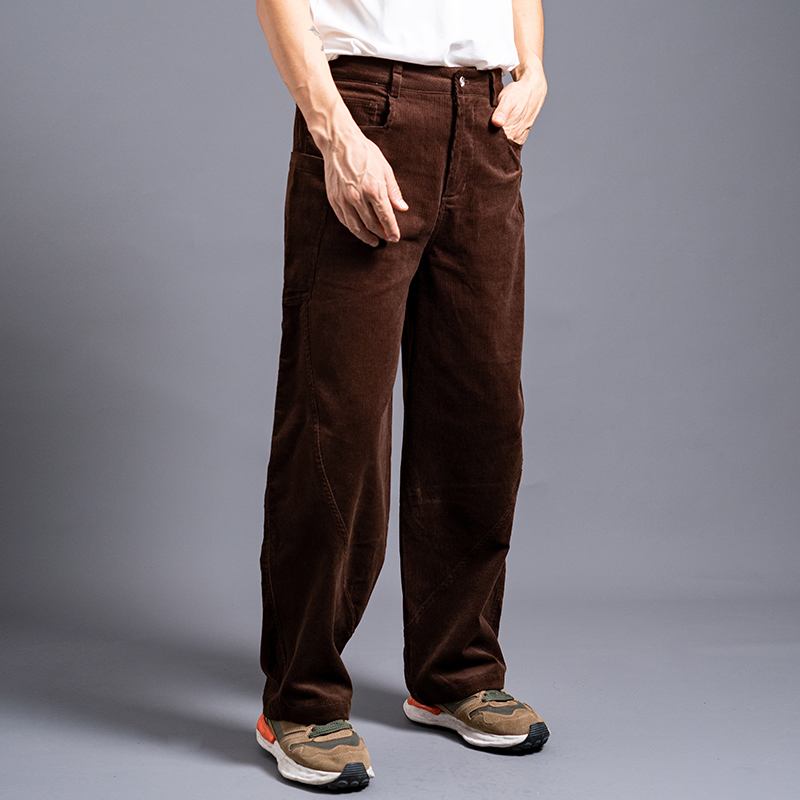 云无疆原创2025春秋新款纯棉条绒灯芯绒立体裁剪弯刀深色长裤男