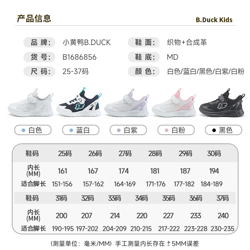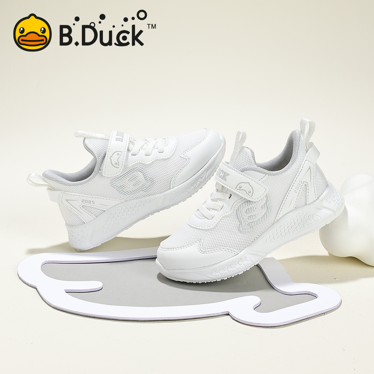 bduck小黄鸭童鞋春秋儿童小白鞋女童运动鞋网鞋女透气网面休闲鞋