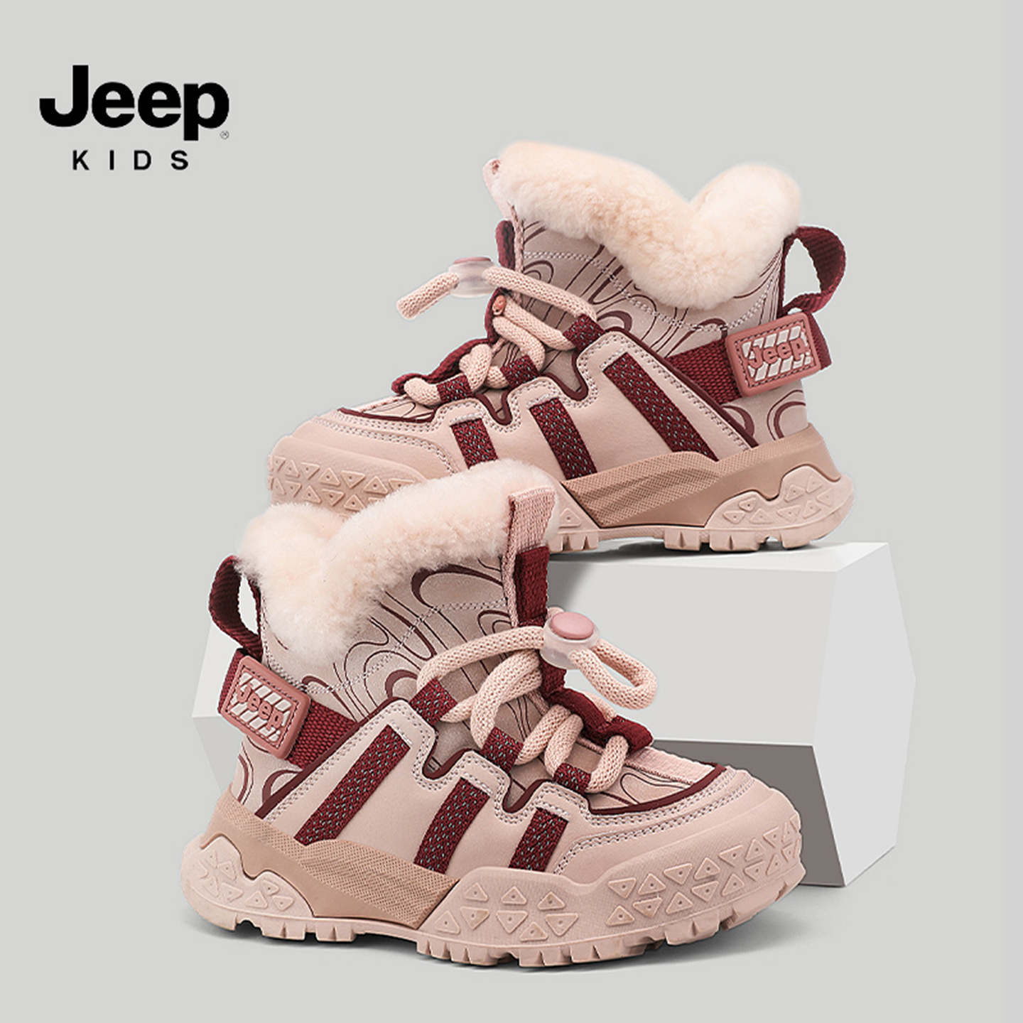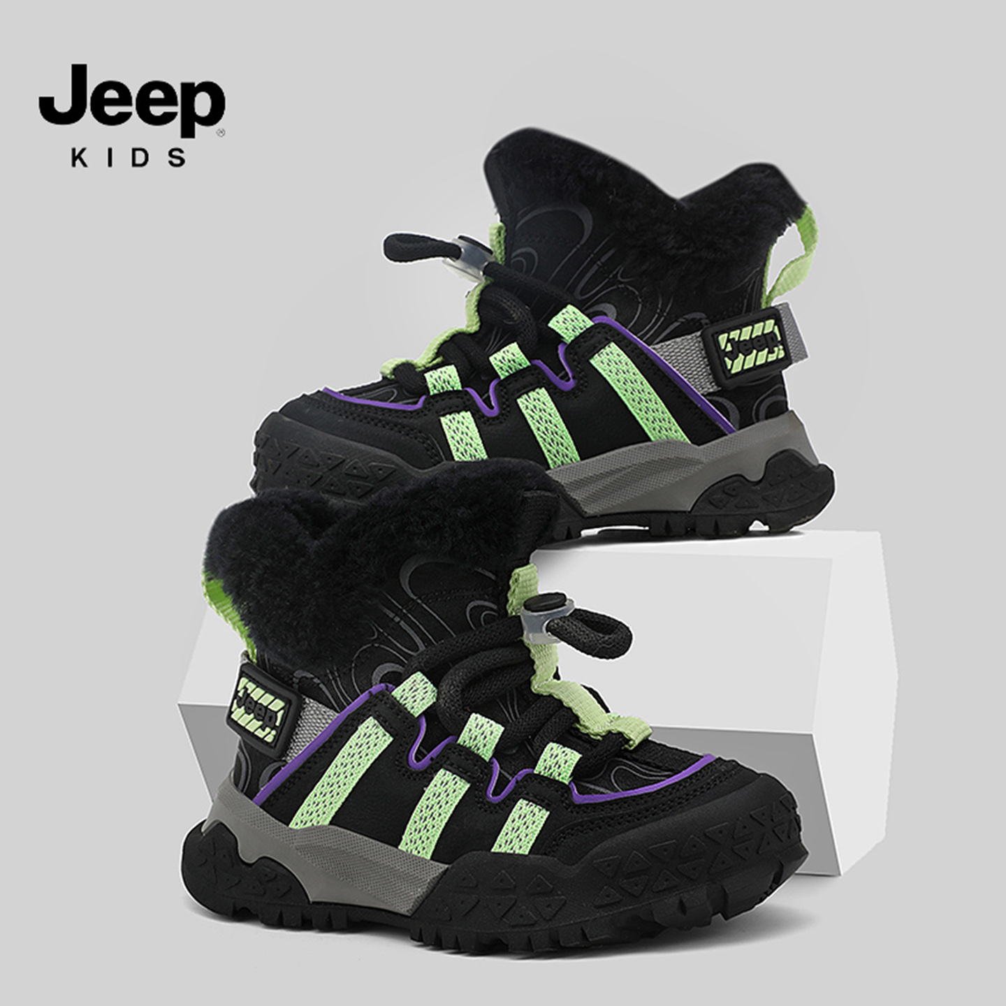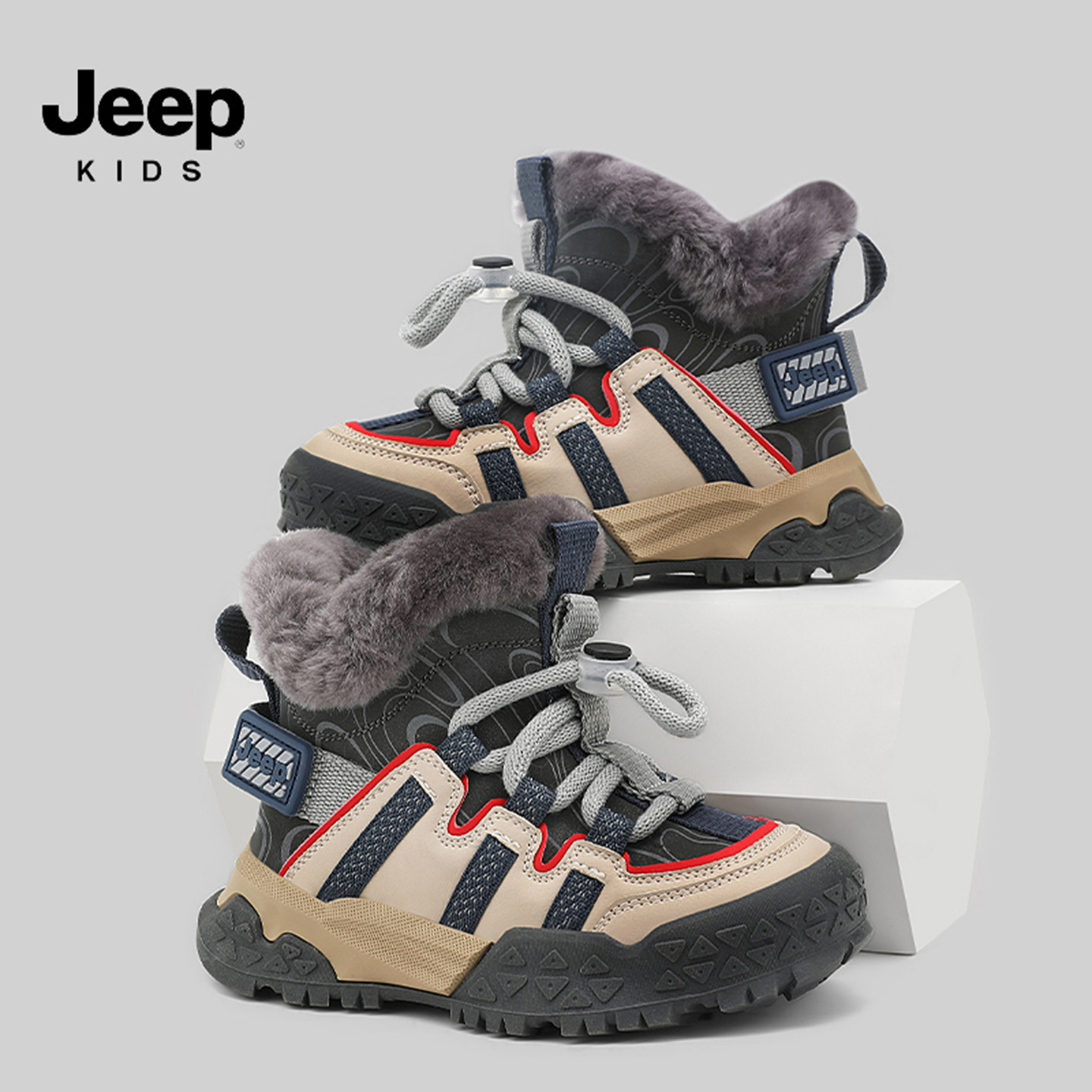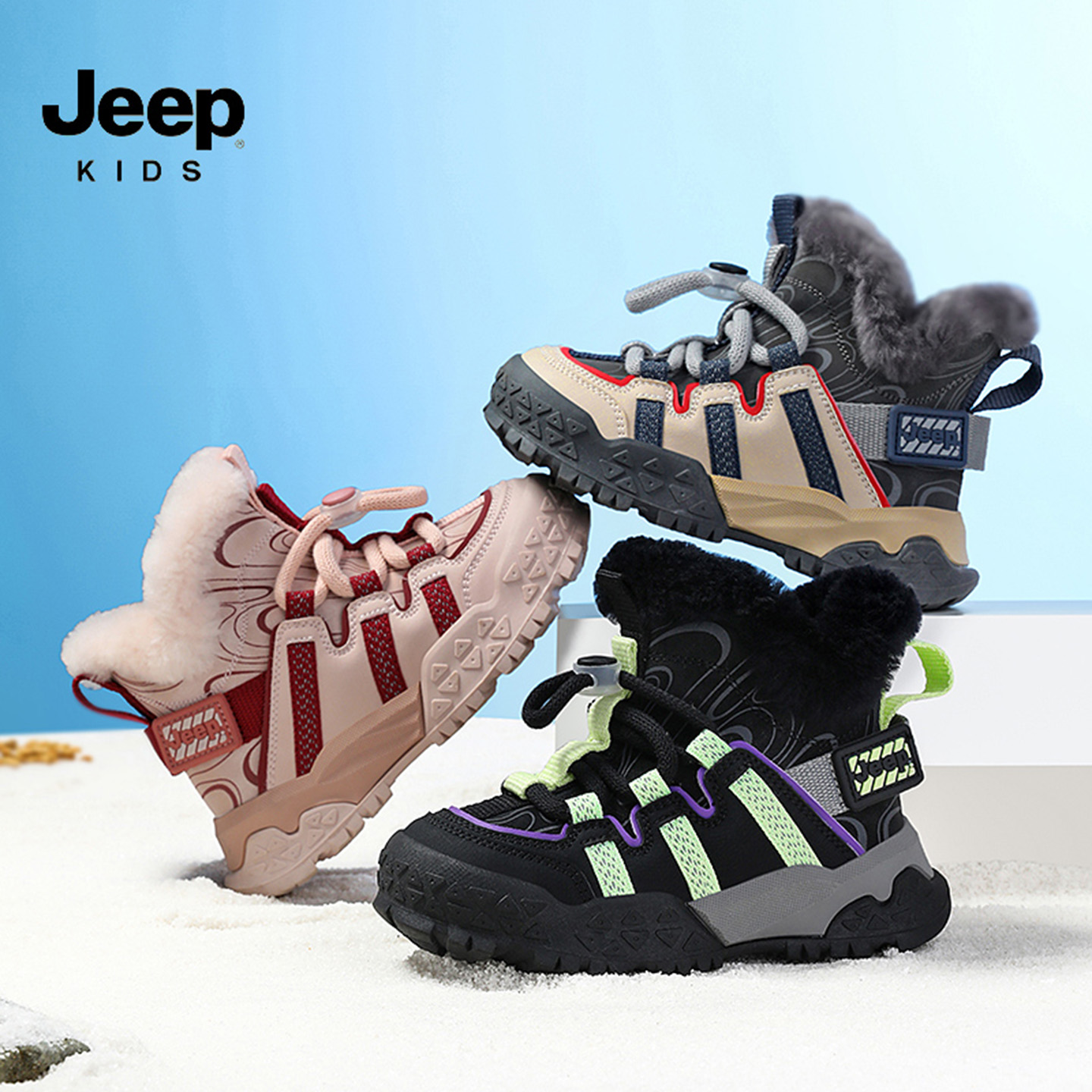 jeep男童加绒保暖雪地靴小学生女童防滑运动棉鞋2025冬季儿童鞋子