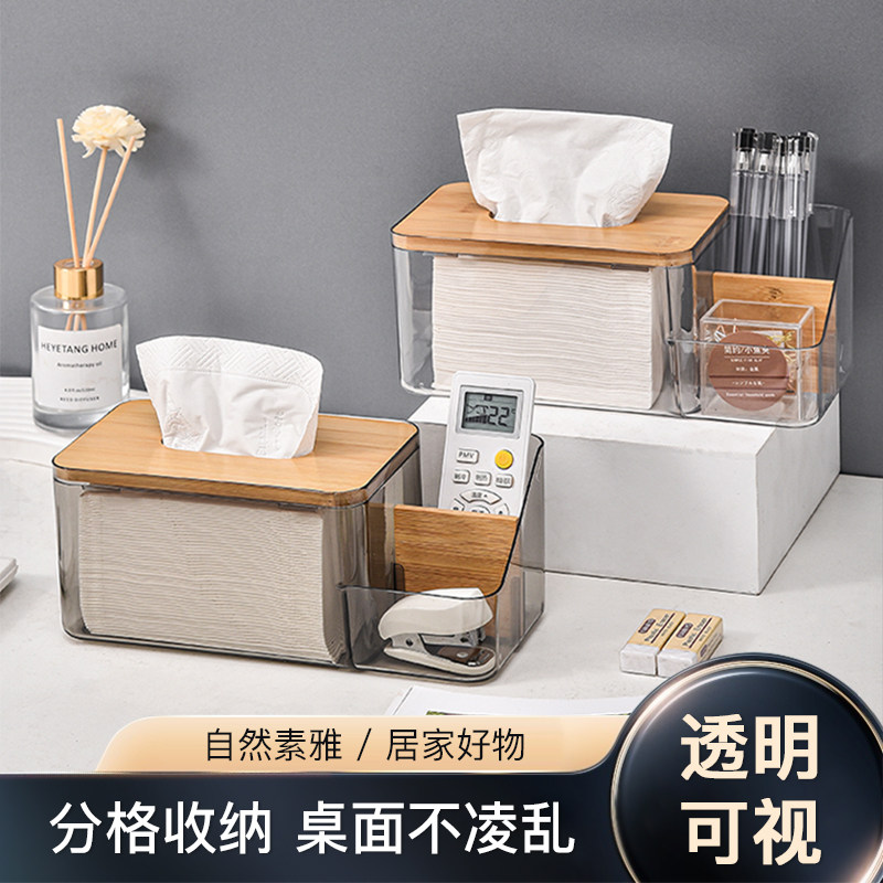 日式竹木纸巾盒创意简约客厅家用抽纸餐巾盒大容量收纳卷纸盒