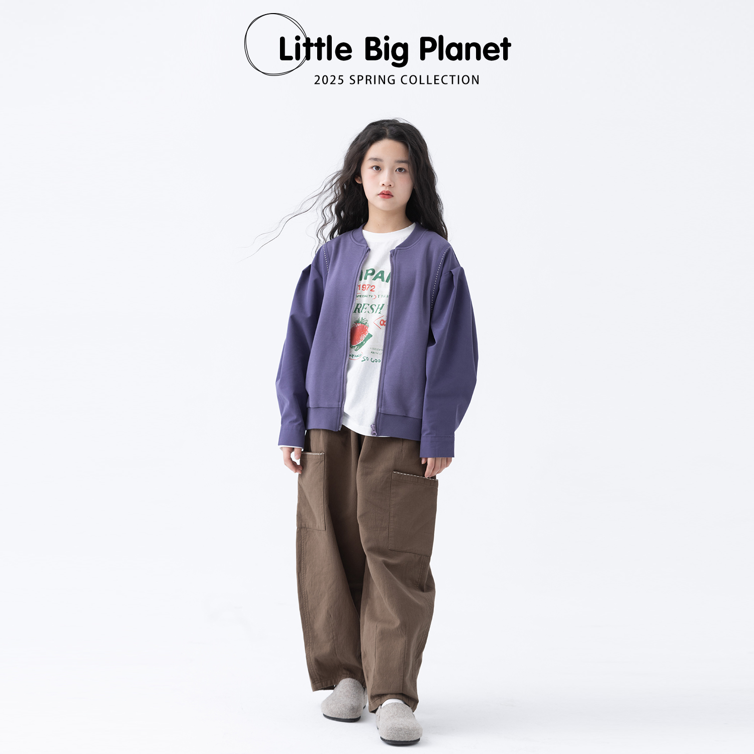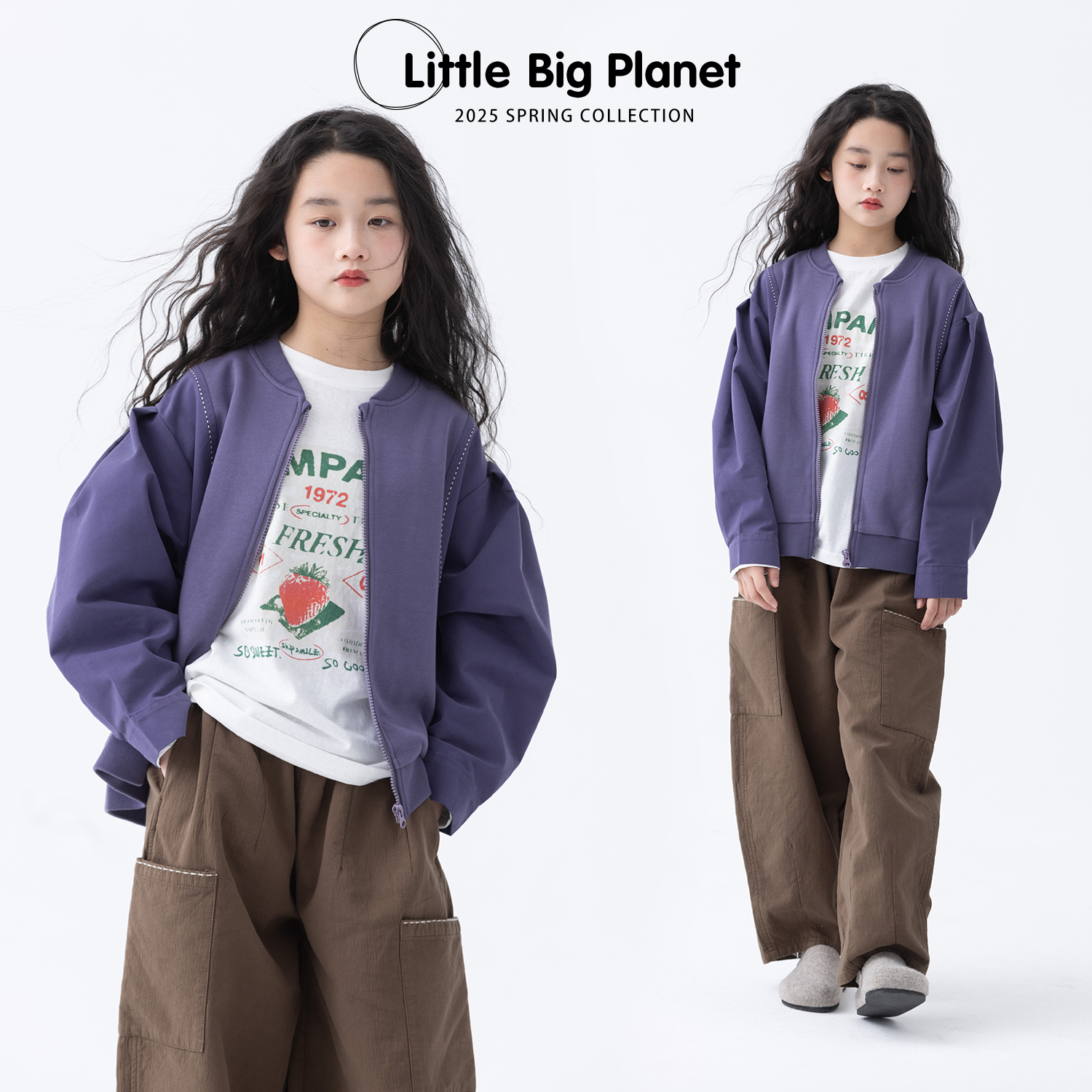小小大星球童装 奈雪紫结构拼接灯笼袖外套 男女童春秋立领开衫