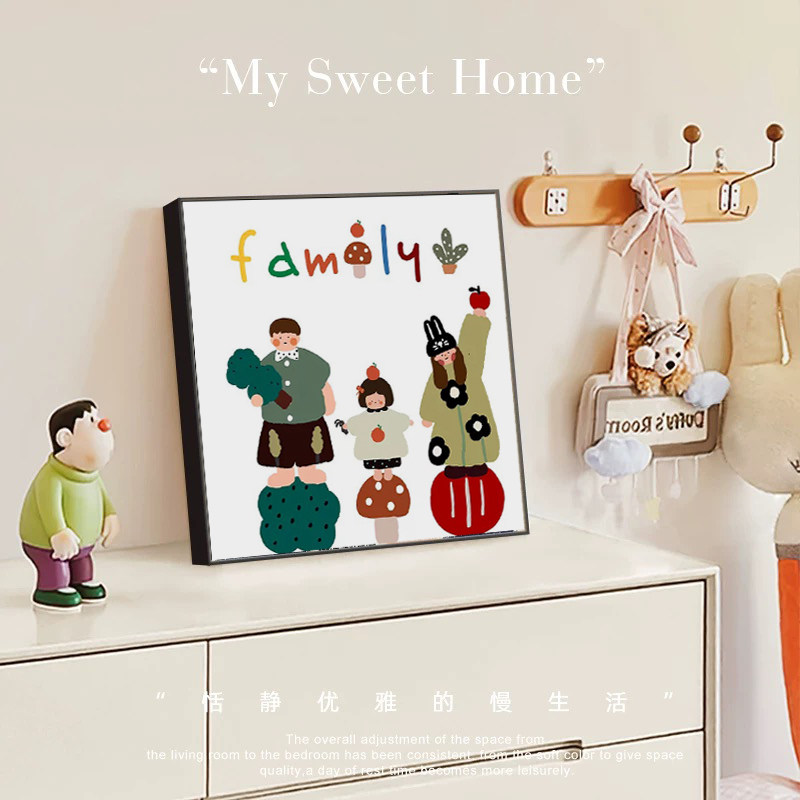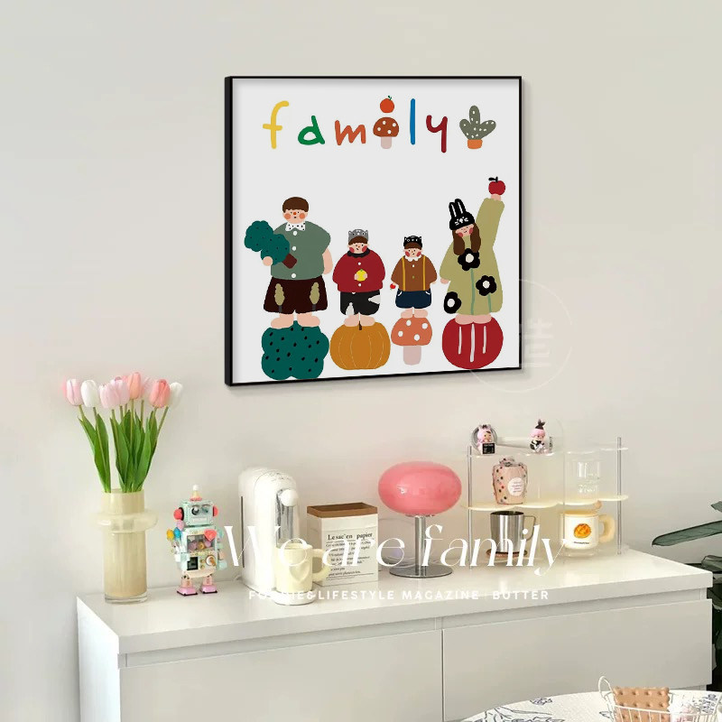 《family》可爱一家三口四口卡通全家福装饰画极简小众抽象挂壁画