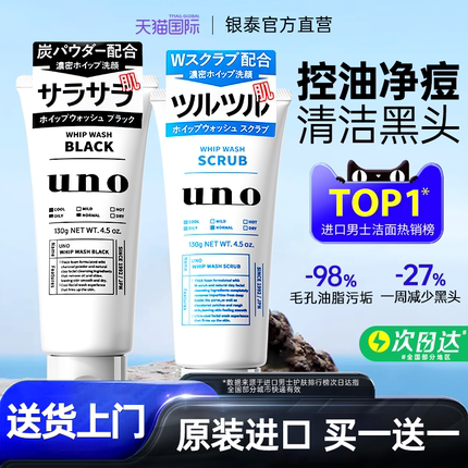 资生堂uno洗面奶男士专用祛痘控油保湿清洁去角质吾诺洁面乳正品