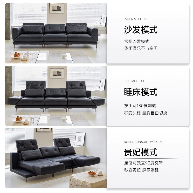 意式极简灵动岛黑色半青皮多功能万象沙发别墅客厅轻奢全真皮沙发