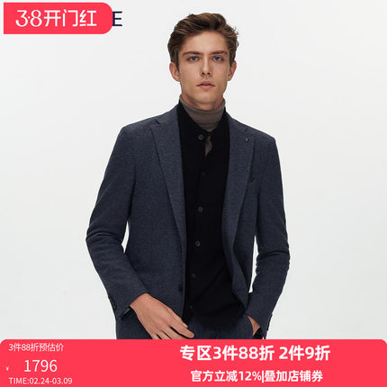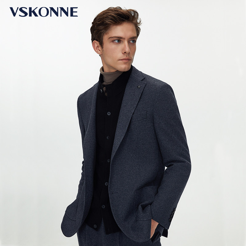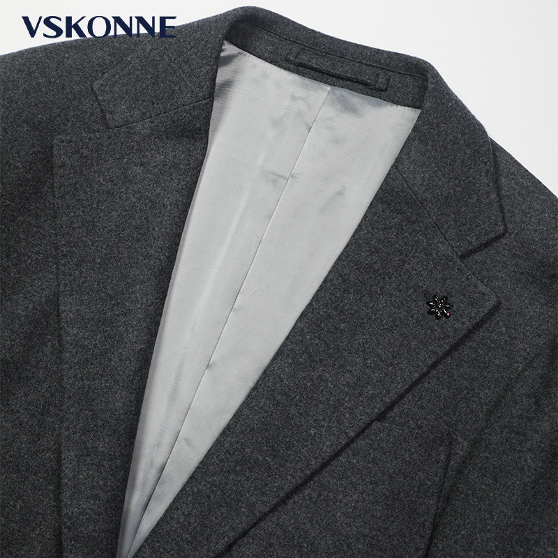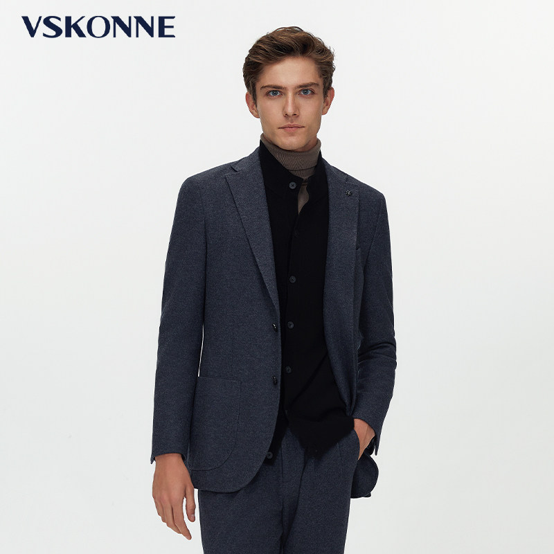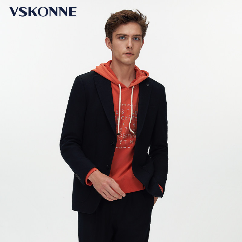 VSKONNE威斯康尼商场同款休闲小西装男黑色羊毛修身单便西服男