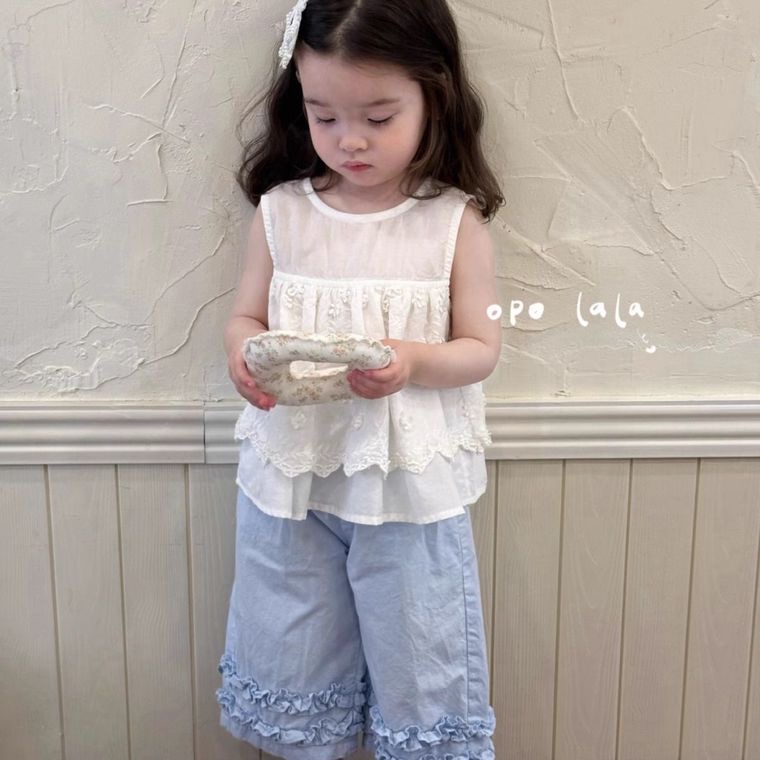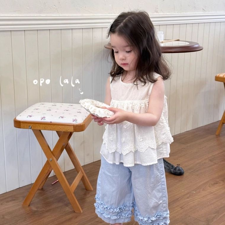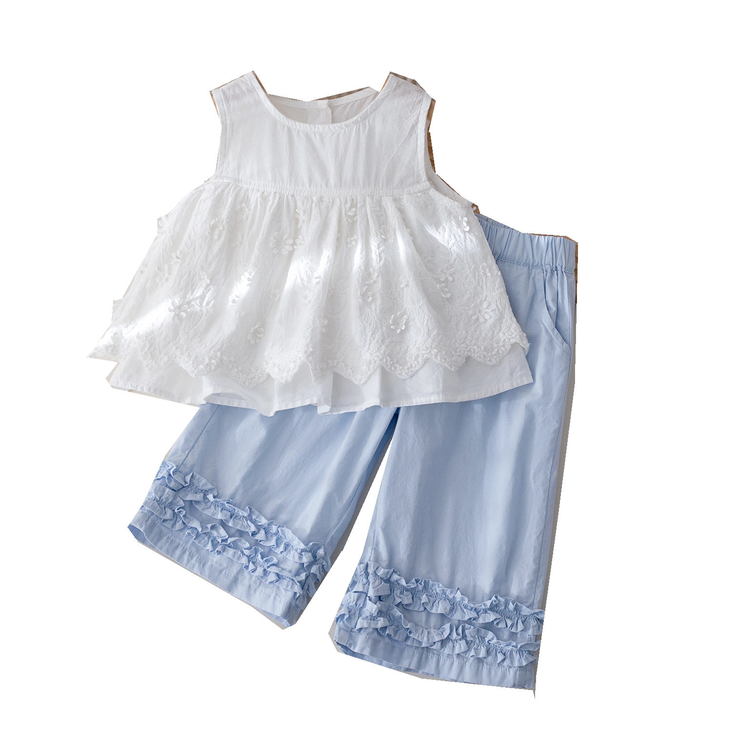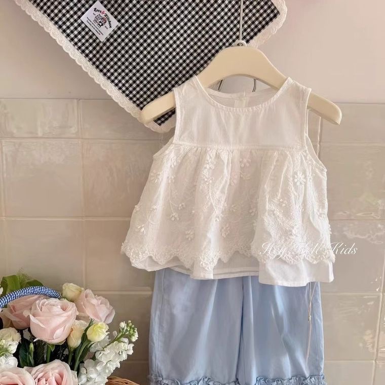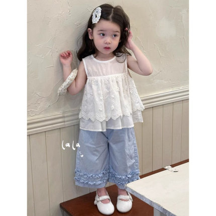 女童夏季两件套2025新款女宝宝重工刺绣娃娃衫儿童阔腿九分裤套装