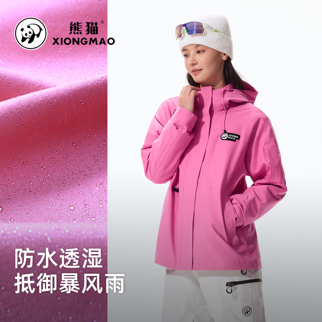【笋壳】明星同款熊猫骆驼冲锋衣女三合一抓绒防水户外登山服外套