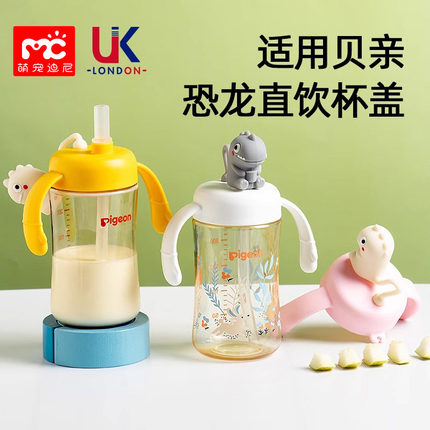 适配贝亲奶瓶配件通用贝亲第三代直饮吸管小恐龙带把手柄水杯盖