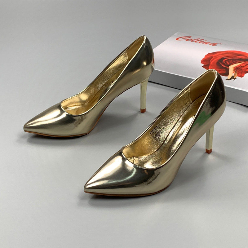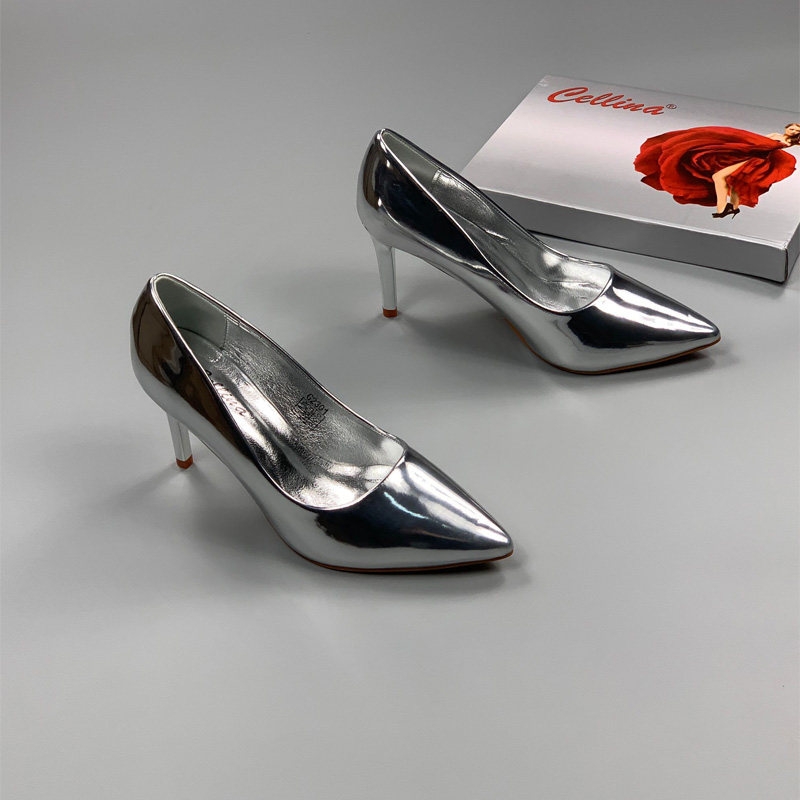 外贸原单女鞋子新款尖头细跟银色百搭气质高跟鞋女浅口鞋职业单鞋