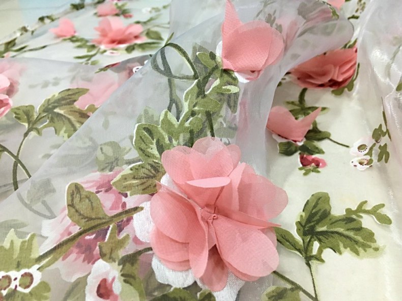 现货立体花雪纺蕾丝欧根纱刺绣布料手工贴花礼服diy婚纱服装面料