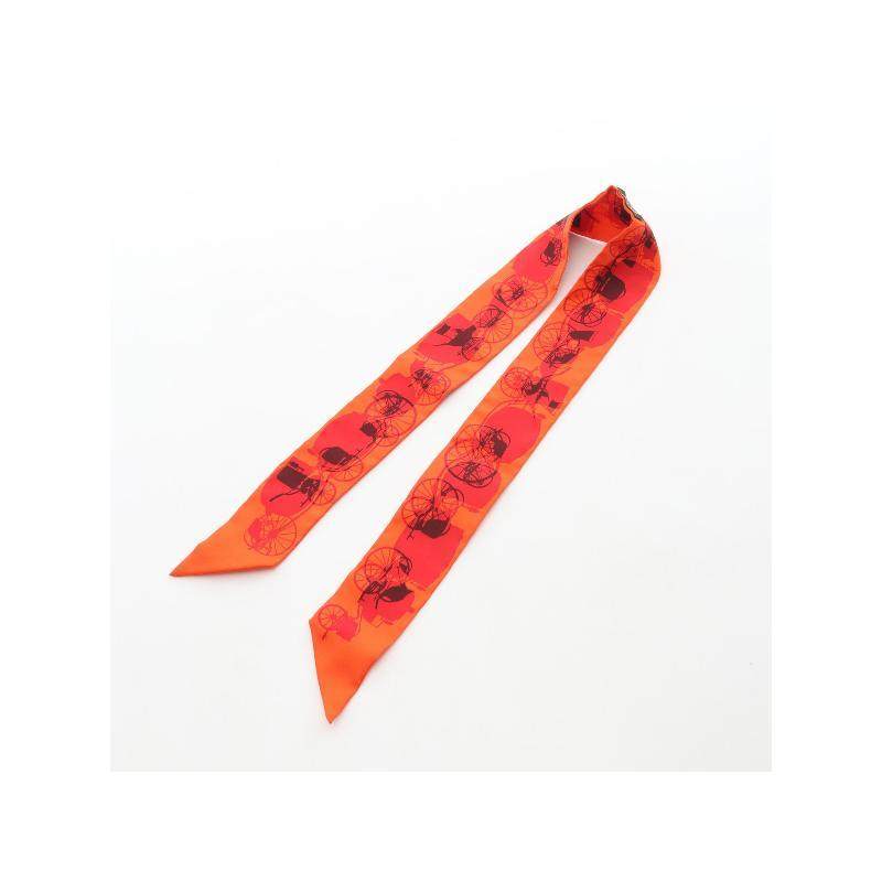 中古Hermes爱马仕女A级95新Twilly小丝巾丝绸围巾/丝巾橘色