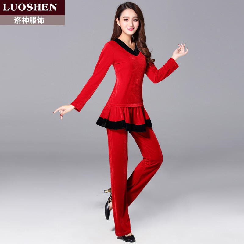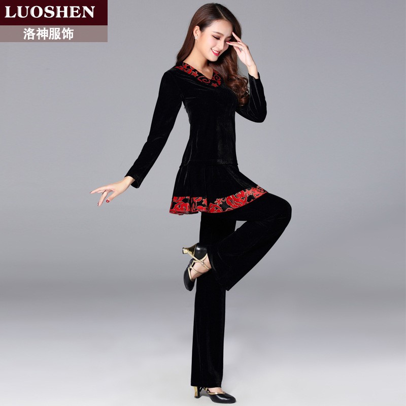 洛神秋冬新款广场舞服装套装女金丝绒长袖演出表演舞蹈服裙子裤子