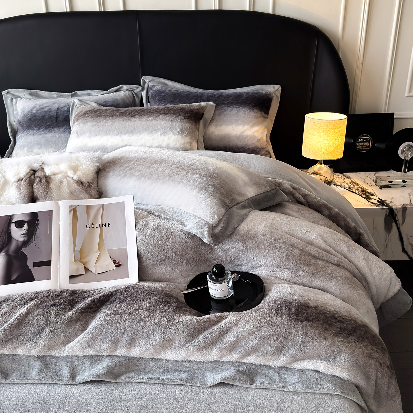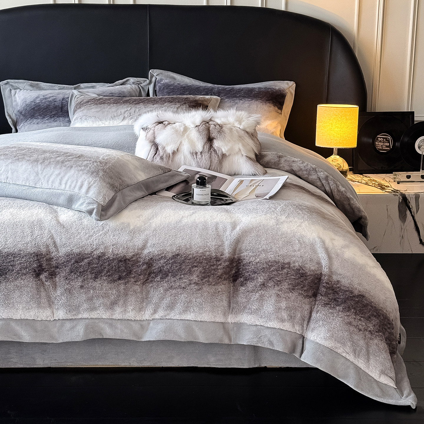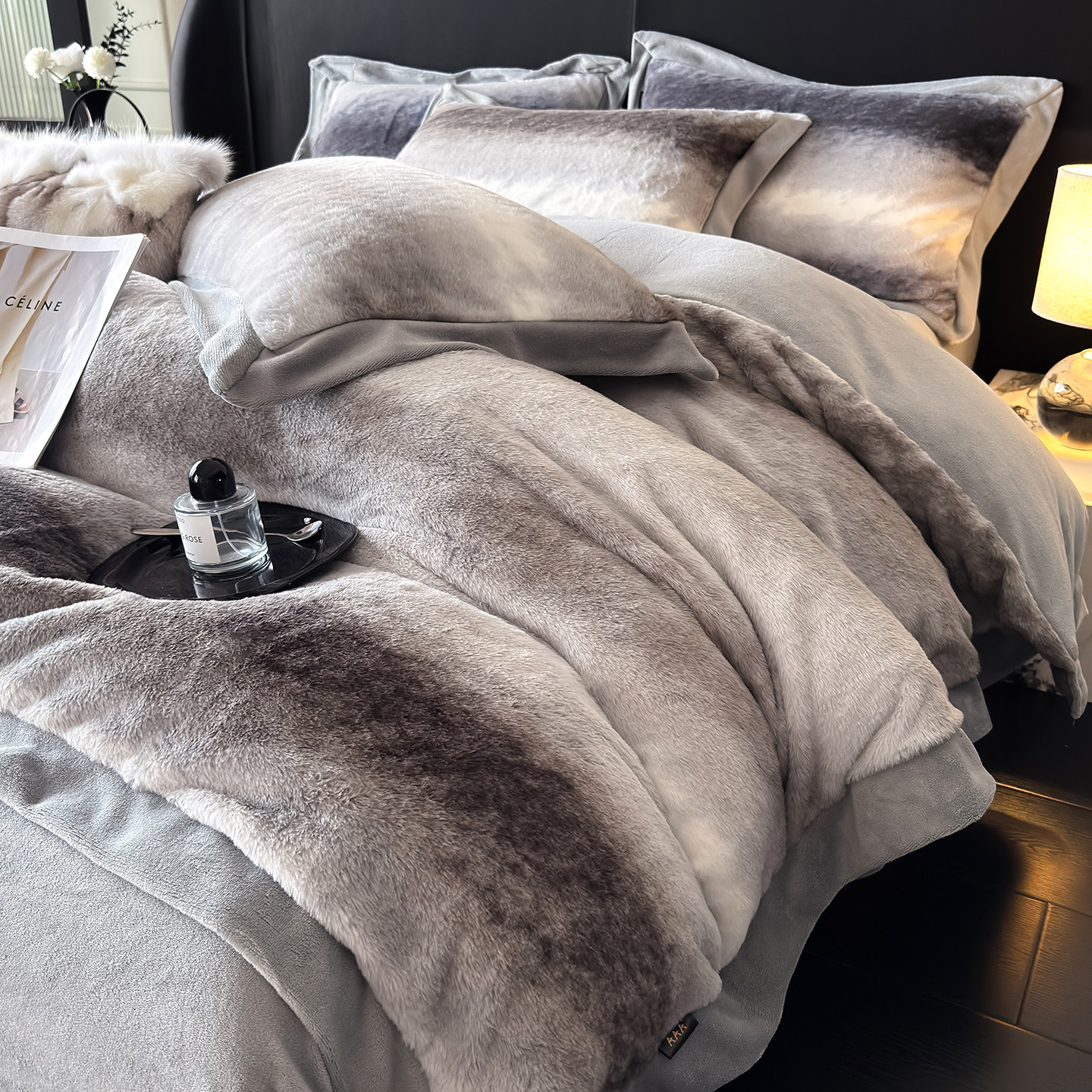 高奢冬季加厚兔毛绒牛奶绒四件套双面加绒保暖渐变珊瑚绒被套床笠