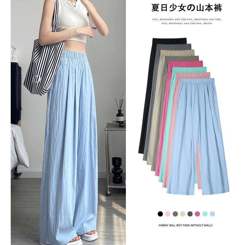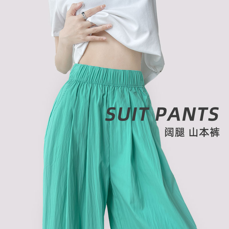 薄款山本裤女裤夏秋季休闲垂感直筒褶皱慵懒风高腰冰丝阔腿裤