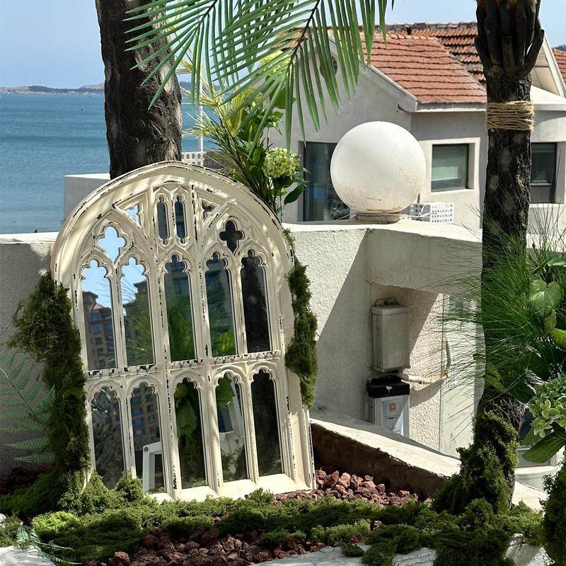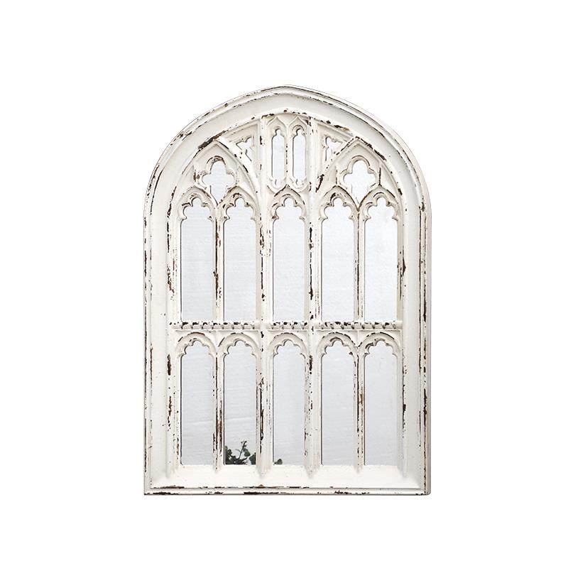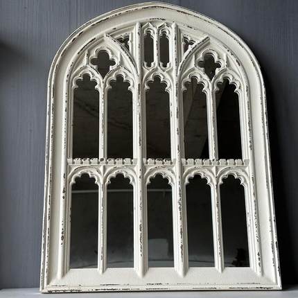 法式家具摩洛哥复古做旧实木宫廷教堂风格拱形罗马柱雕花壁挂镜子