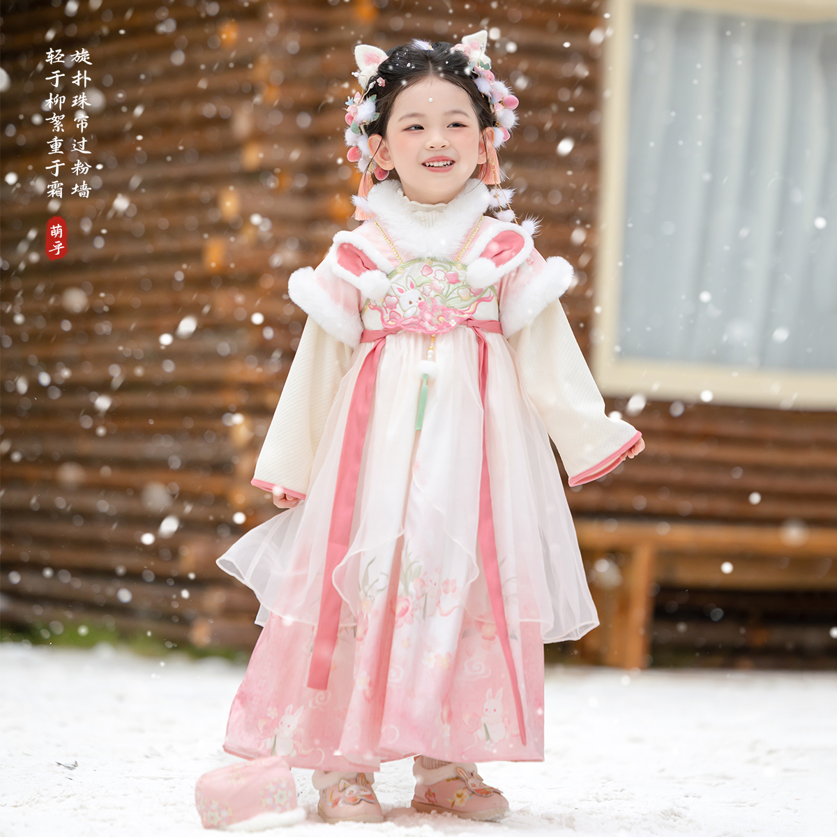 汉服女童冬季小女孩国风高级连衣裙2025新款宝宝儿童仙女公主襦裙