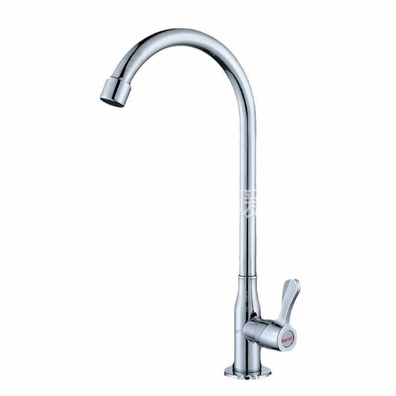 不锈钢电镀高仪大弯单冷立式水龙头 厨房菜盆滚珠高弯水龙头