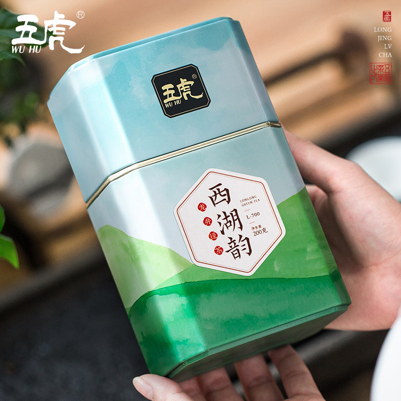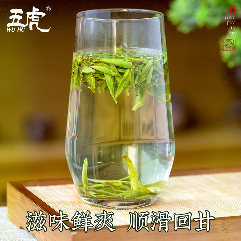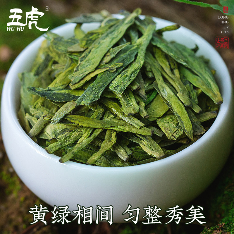 五虎西湖韵明前龙井茶绿茶茶叶自己喝春茶浓香型散装罐装2025新茶