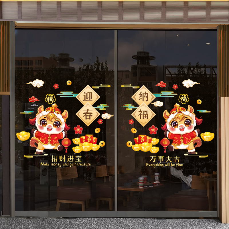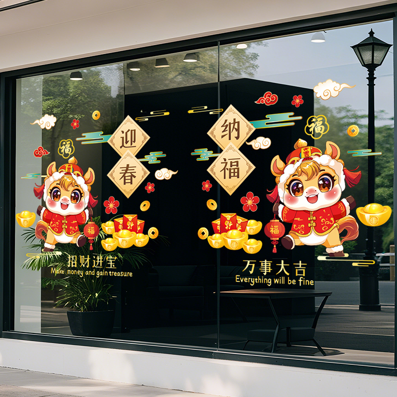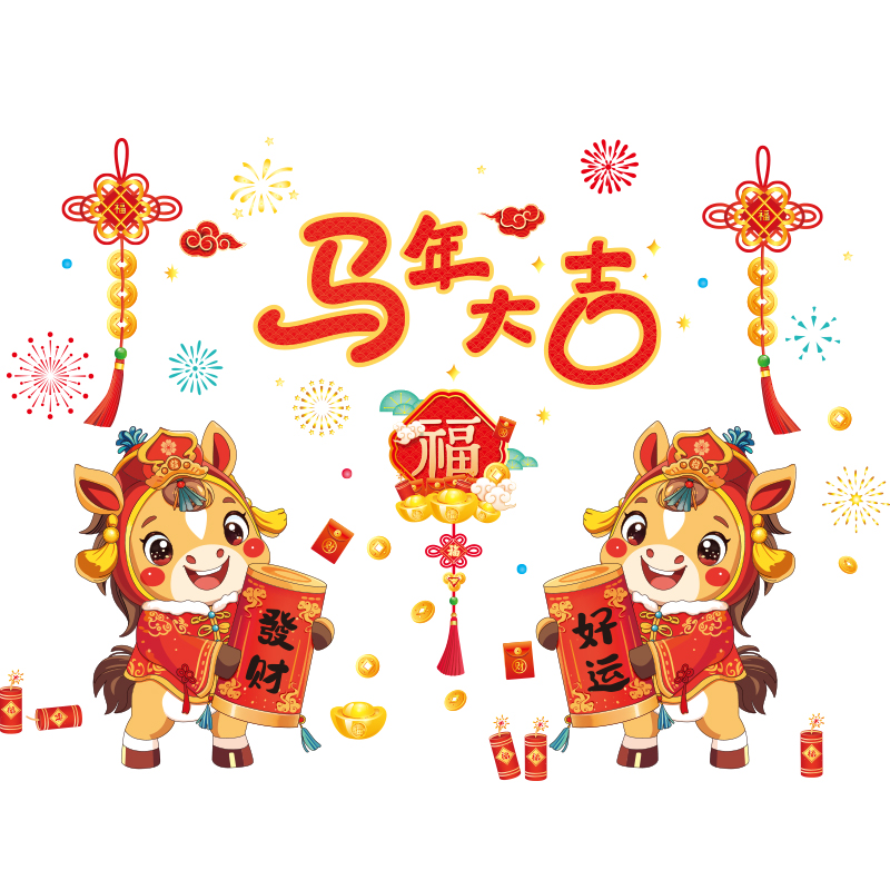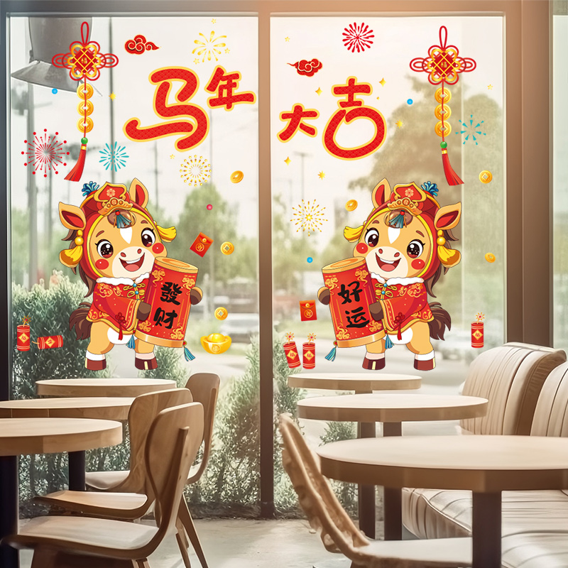 2026马年新年装饰氛围场景商场玻璃贴纸静电贴春节元旦布置窗花贴