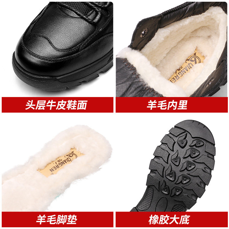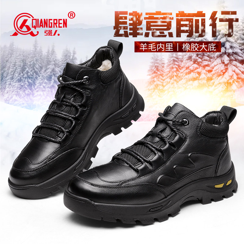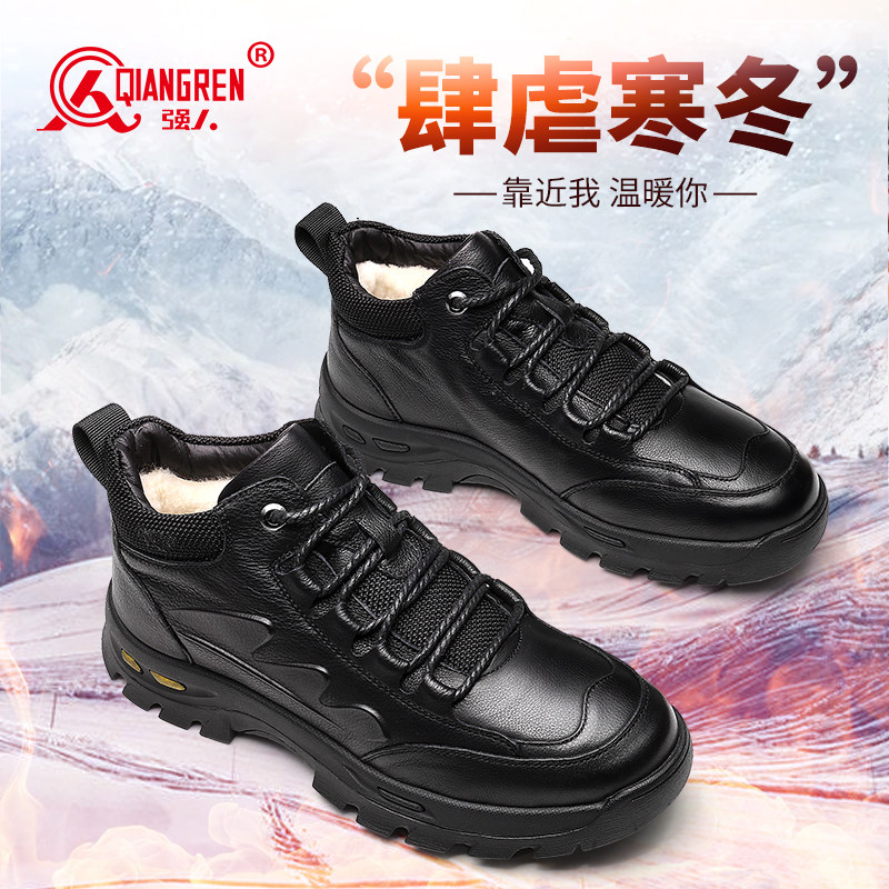 强人3515棉鞋男羊毛皮毛一体男鞋真皮休闲冬季加厚保暖东北大棉鞋