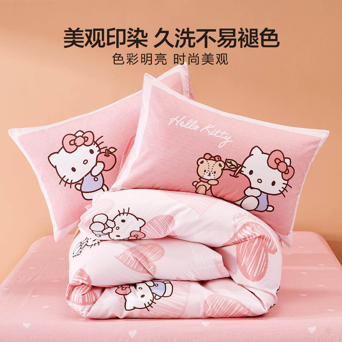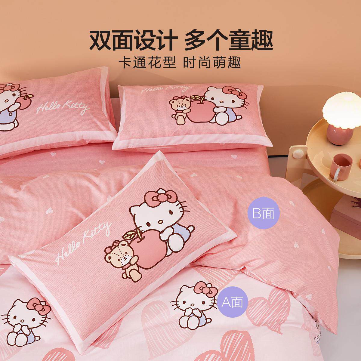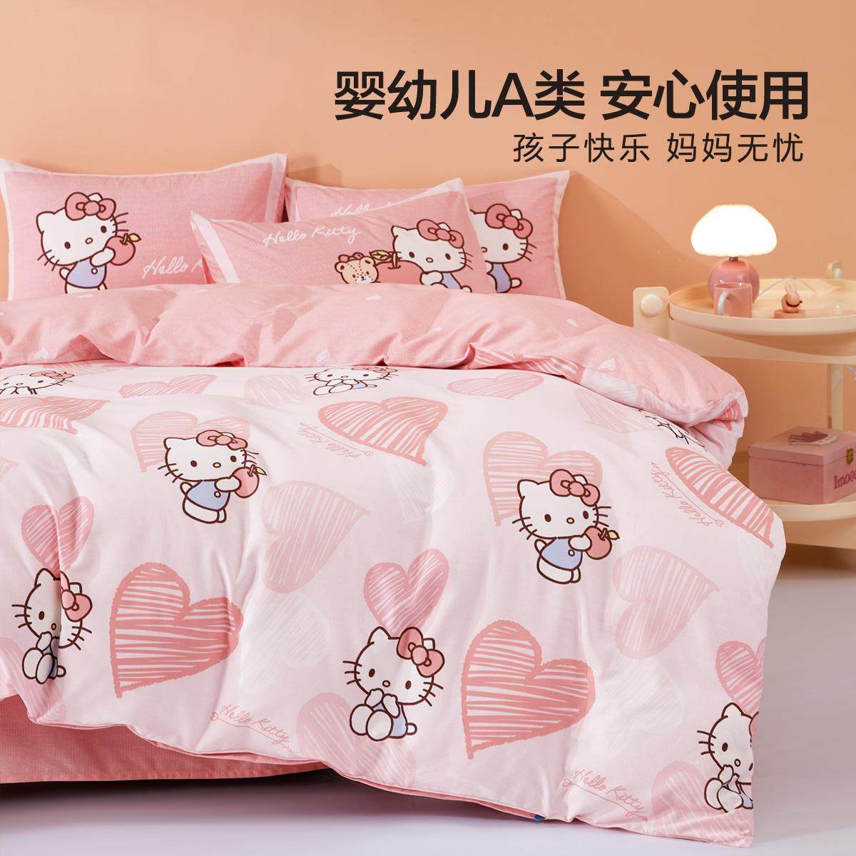 水星家纺全棉磨毛三/四件套母婴A类抑菌保暖套件被套hellokitty