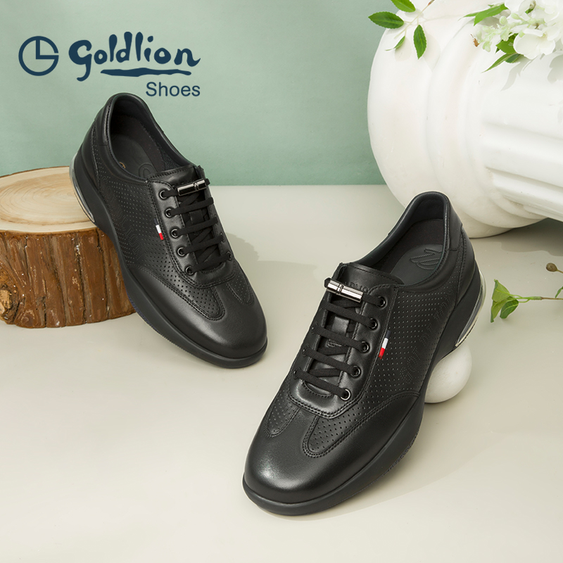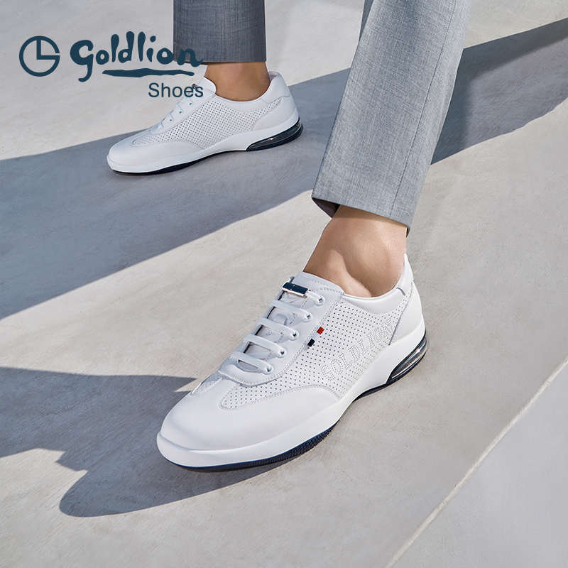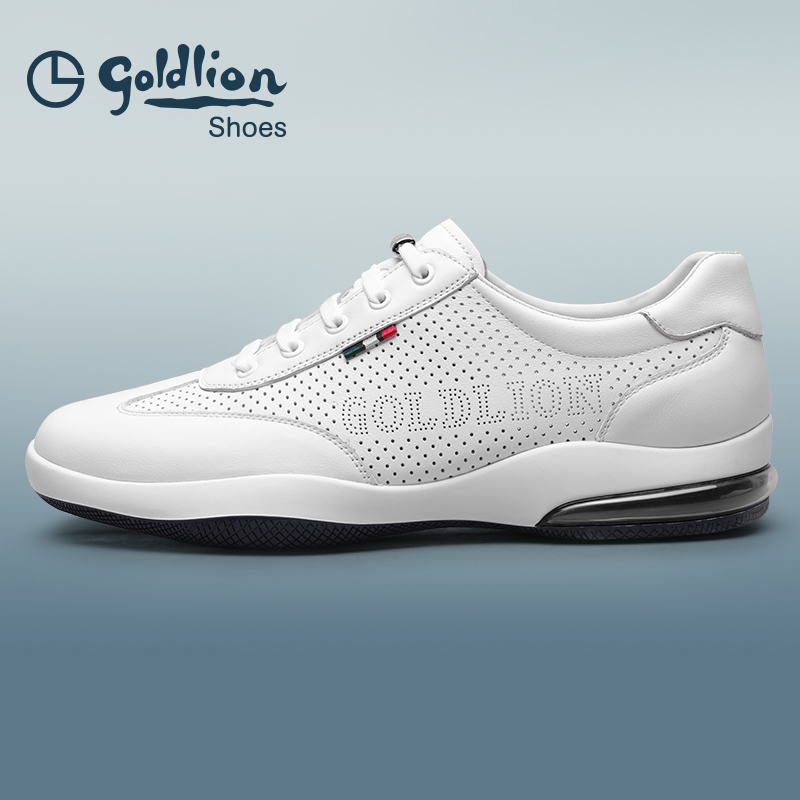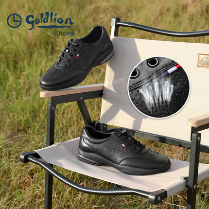 金利来男鞋2025夏季冲孔镂空透气休闲皮鞋男运动鞋耐磨缓震真皮男