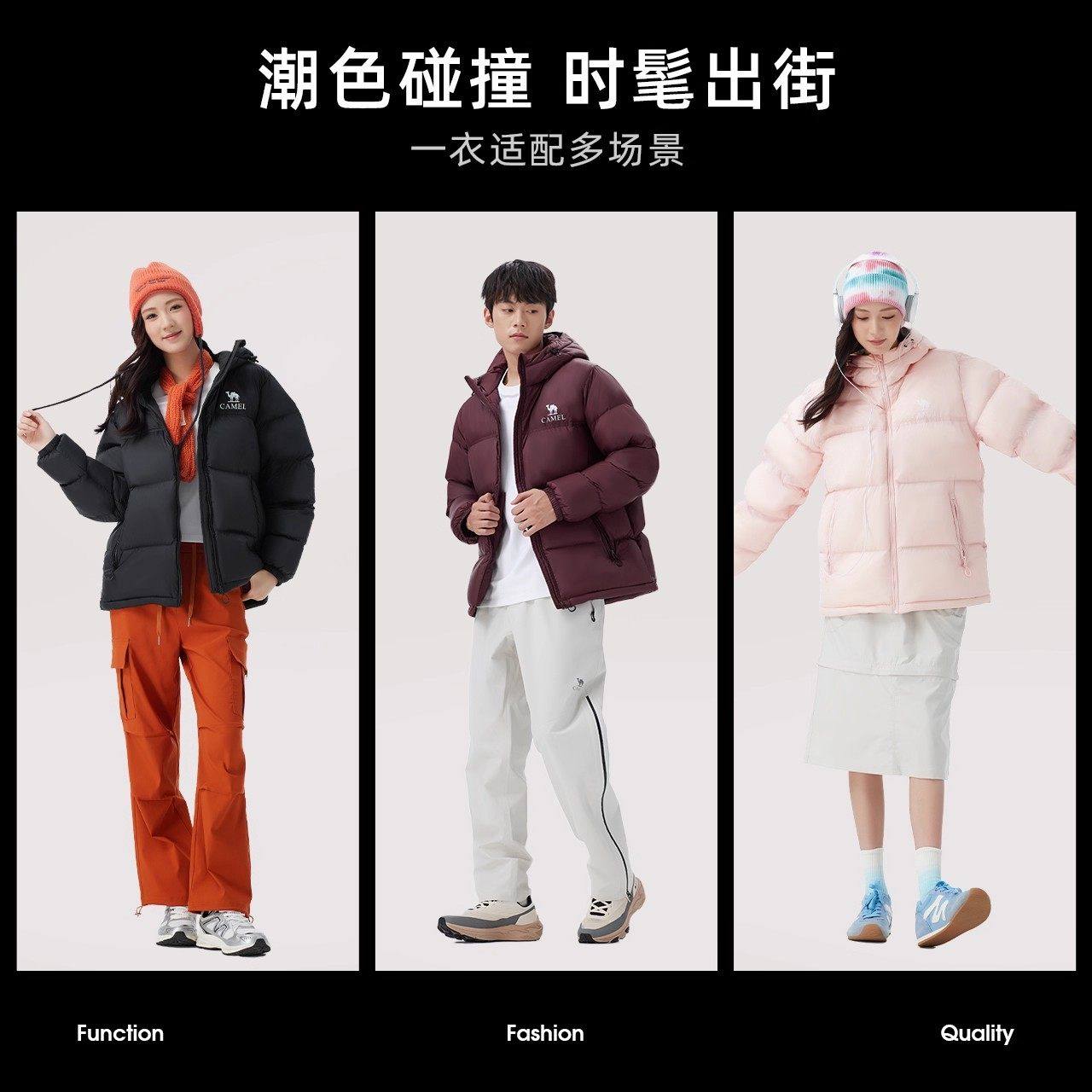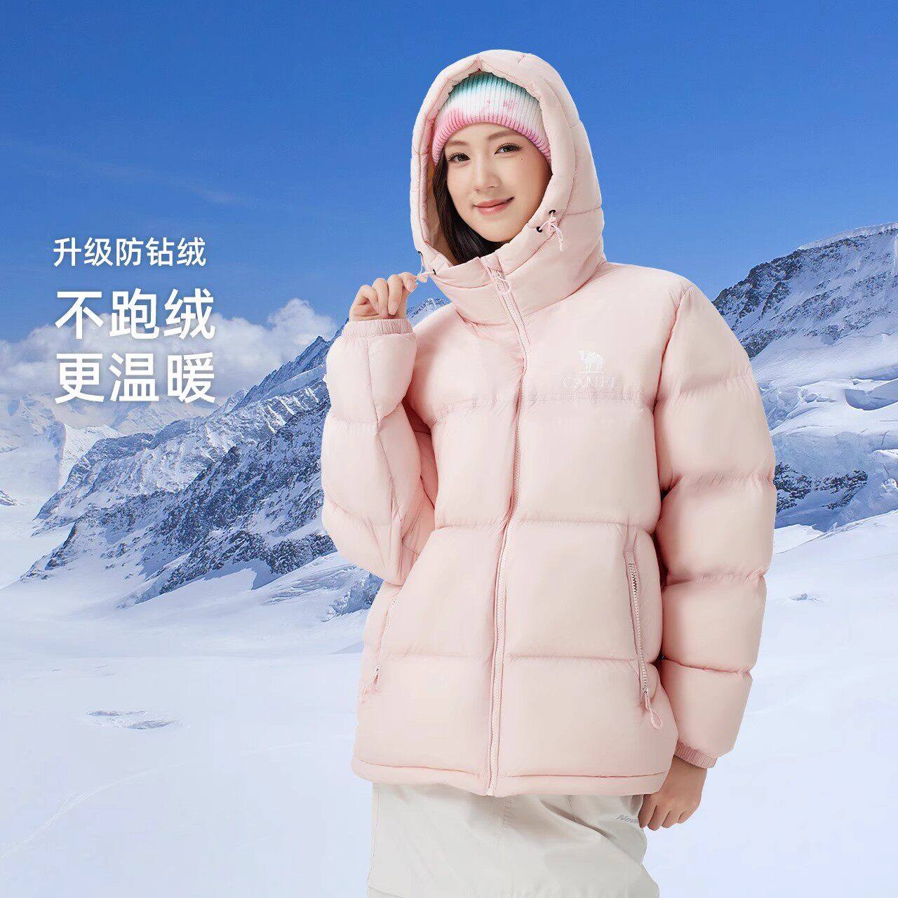 骆驼女装短款羽绒服加厚2025冬新款男女同款防风保暖连帽羽绒外套