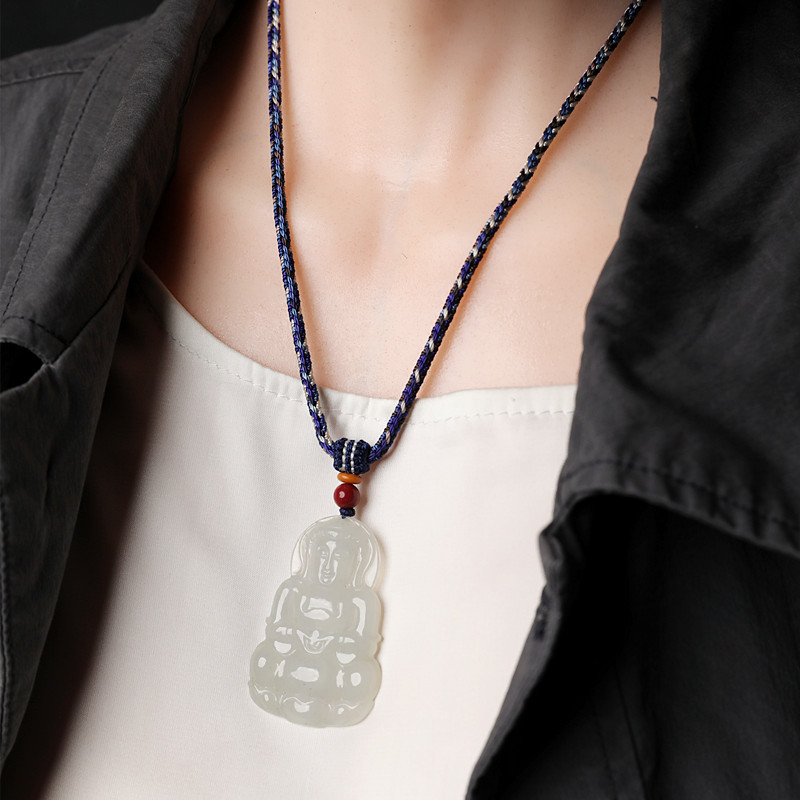 炫彩蓝崭新的开始八股编织项链绳子玉佩观音貔貅黄金吊坠绳挂脖绳