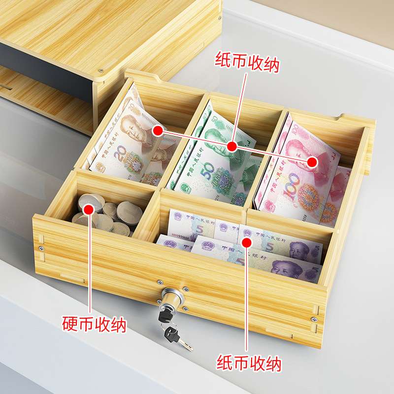 桌面零钱收纳盒钱币现金纸硬币收银抽屉分隔整理架收钱盒子零钱盒