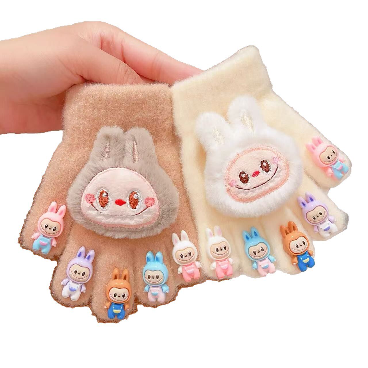 儿童手套拉布布卡通秋冬新款女童五指全指套男童宝宝毛绒保暖防寒