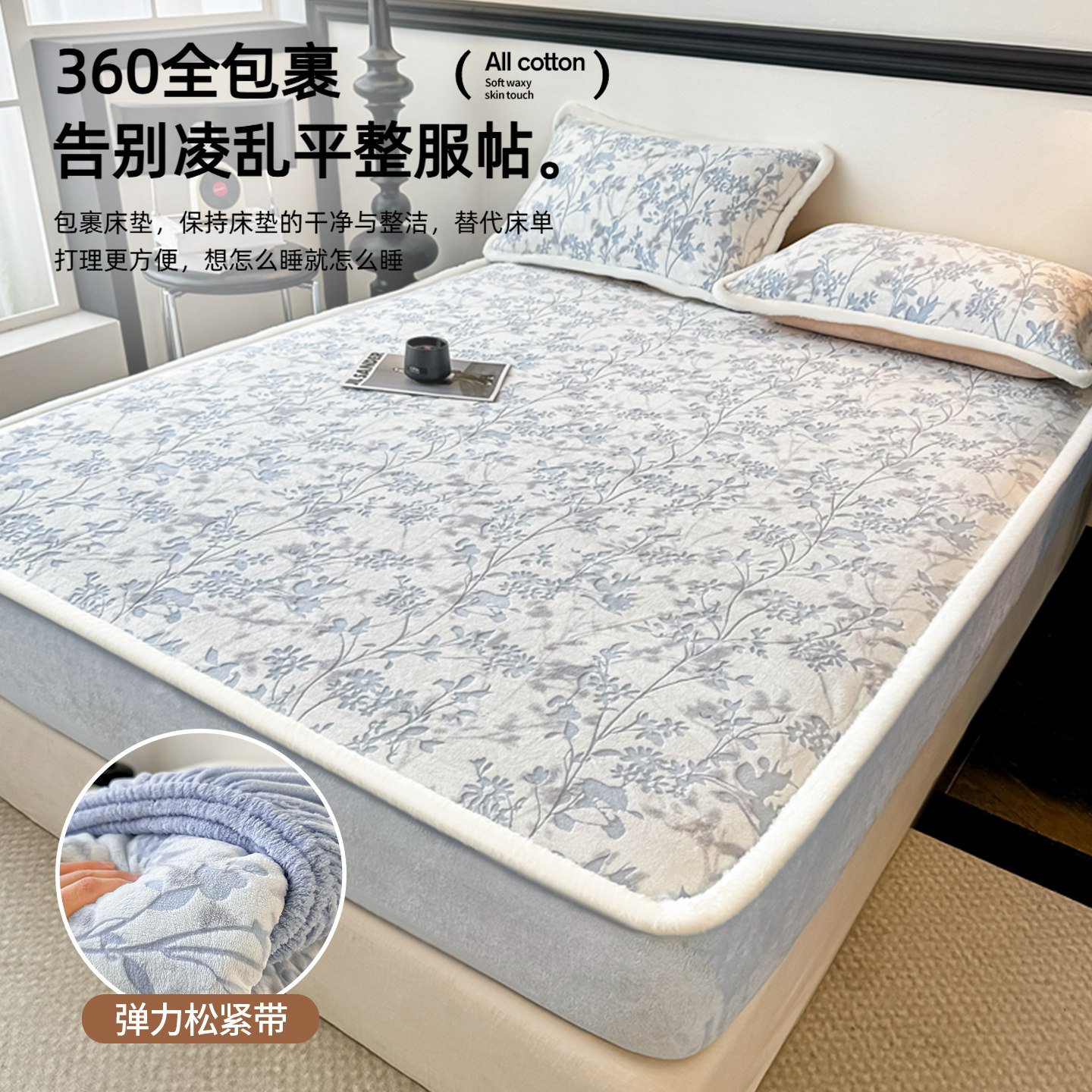 冬季新款牛奶绒包边床笠单件加厚保暖抗静电床罩席梦思床垫保护套