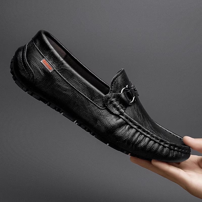 男鞋2025新款秋季透气英伦商务一脚蹬懒人豆豆鞋男士休闲皮鞋真皮